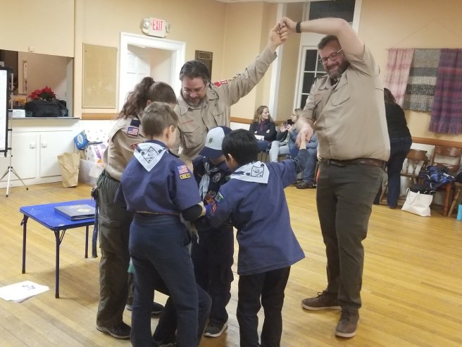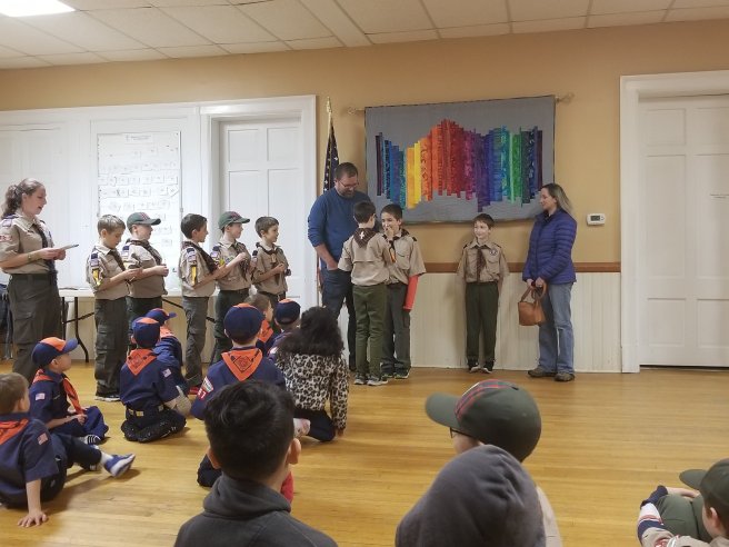 This past Friday, December 6, 2019, Cub Scout Pack 107 had a festive, fun-filled Holiday Pack Meeting. The pack collected donations to support Veterans Inc., and the Charlton Food Pantry. In doing so, our cub scouts learn that a scout is friendly, kind, and helpful. Great job Pack 107. The tote for Veterans Inc. weighed in at over 37.5 lbs. Thank you for your generosity. Great job, Pack 107 families!!