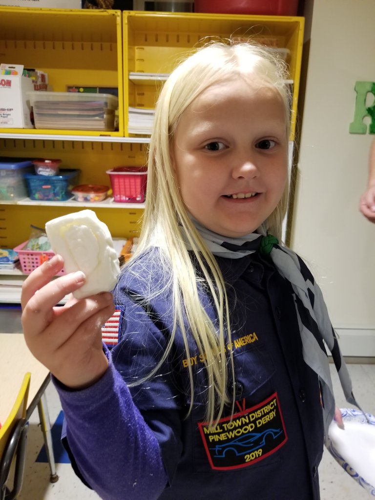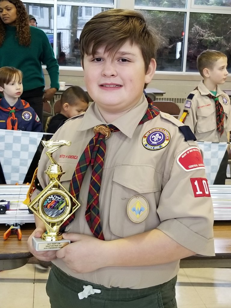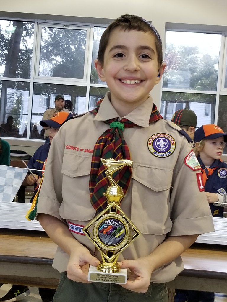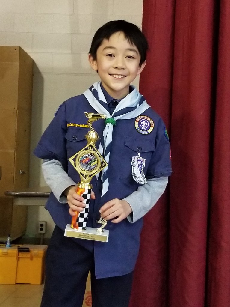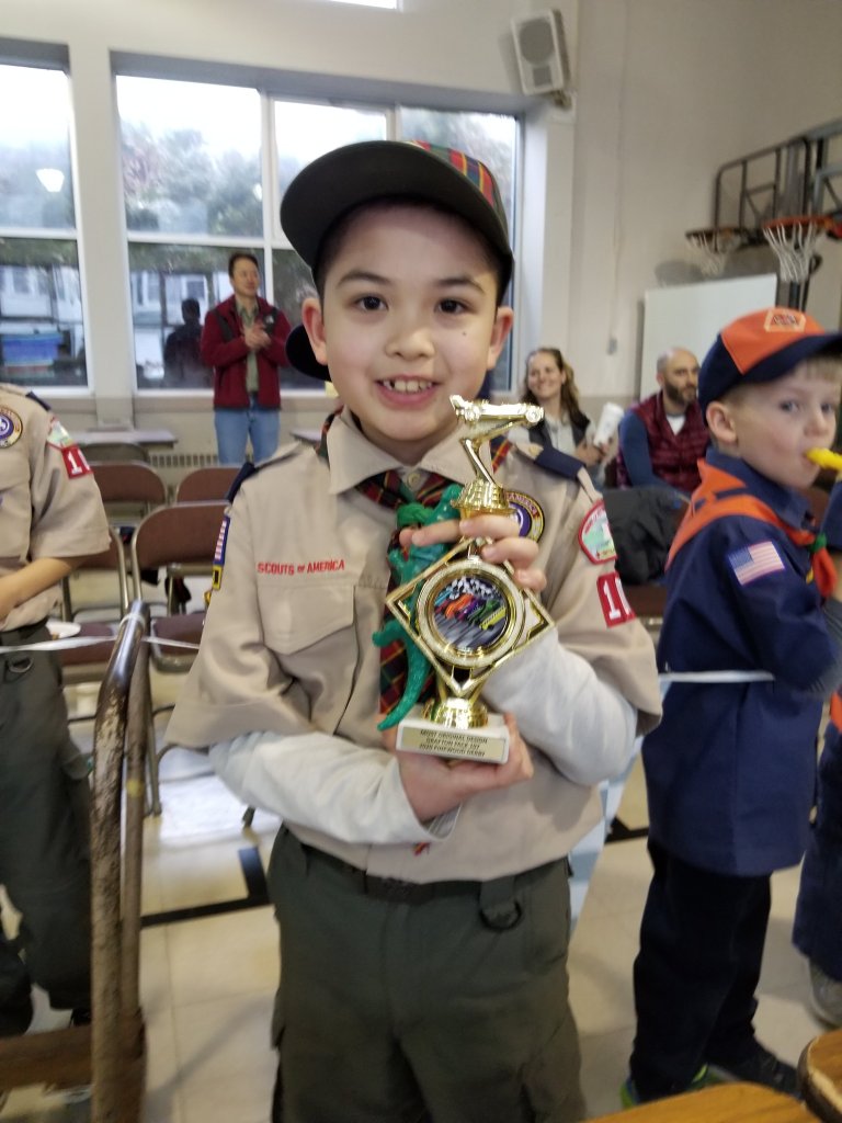 Awards for speed were awarded to the Pack’s top 3 winners. Congratulations to 1st place winner, Gabriel F, 2nd place winner, Ailsa G., and 3rd place winner, Nick S. A special award called ” Draggin’ In” Safe Driver award, for the slowest speed, was awarded to Kaleb L. Congratulations winners!