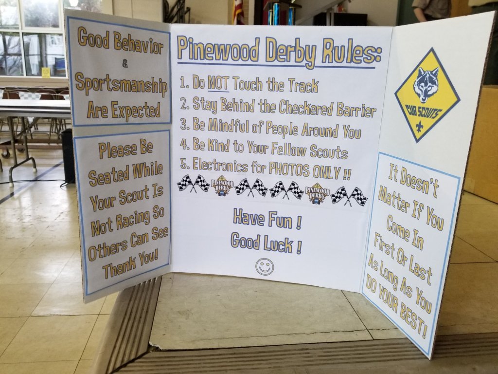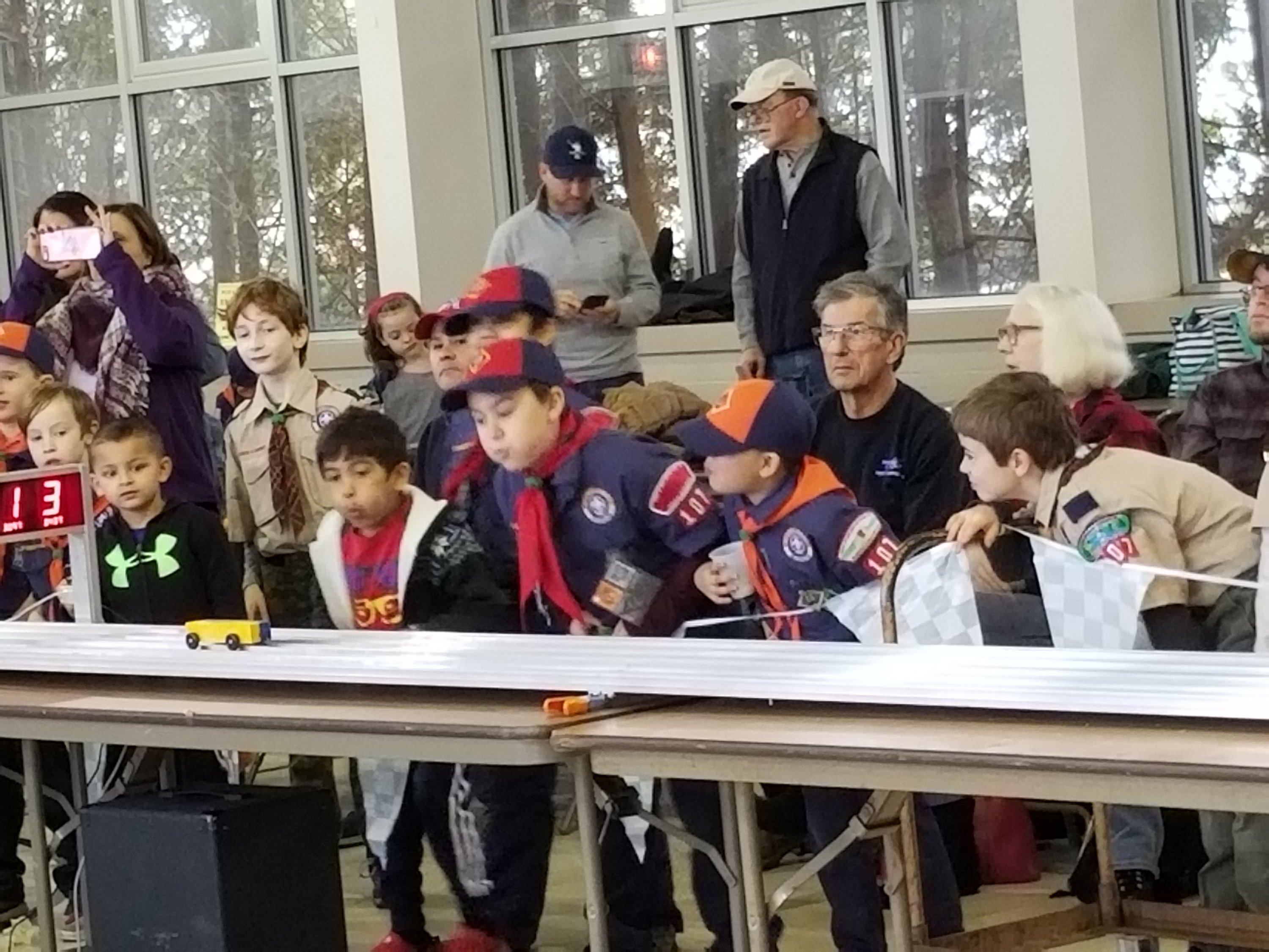 A big thank you goes out to Mr. Chris Tedford, cubmaster of Pack 106, for spending the day with us to help us run the Pinewood Derby, and to Pack 106 for lending us the derby track.