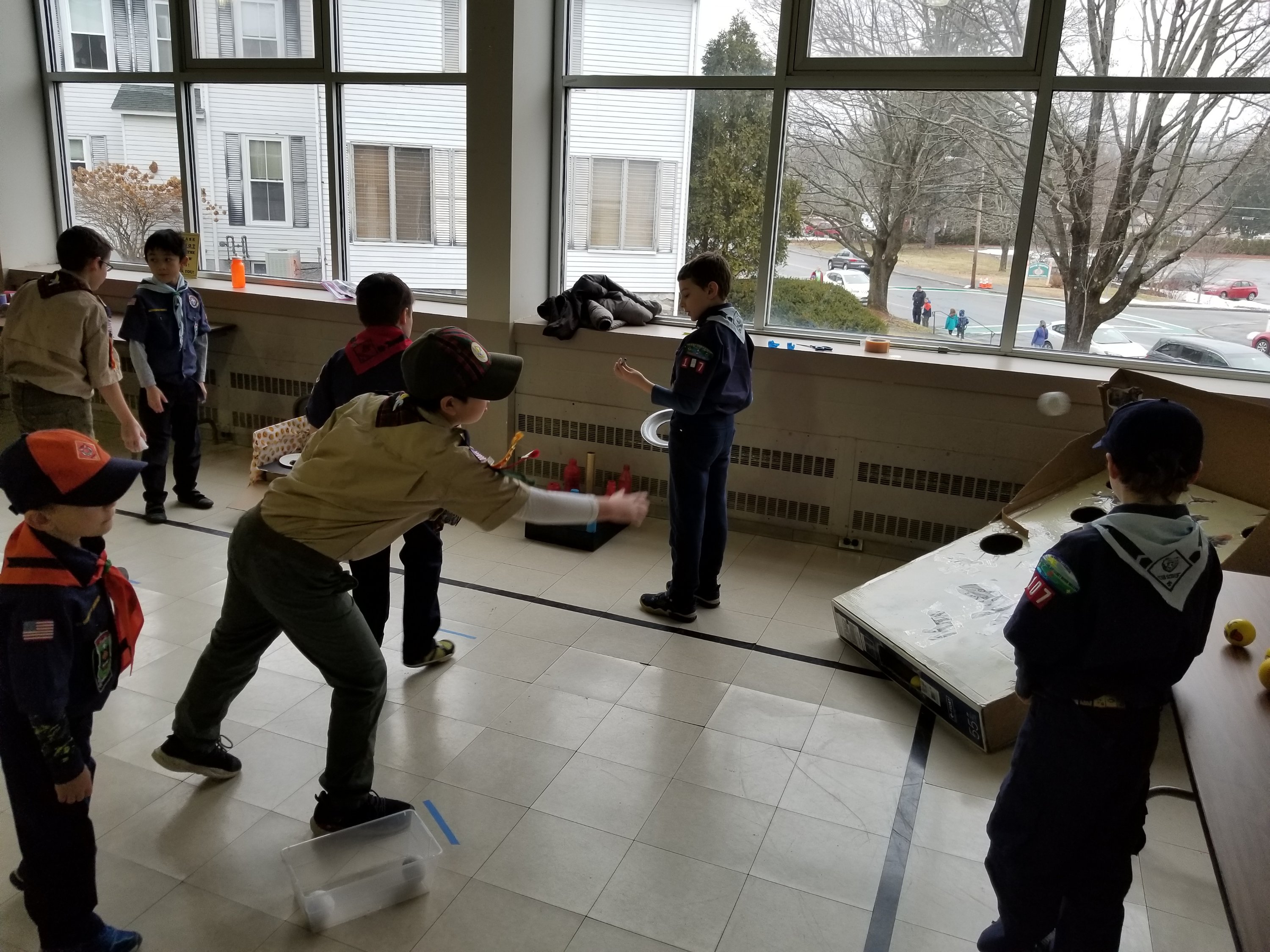 Before the Pinewood Derby got started, the Bear Den organized an entertaining and fun carnival for all the cubscouts to enjoy. The Bears did a great job creating clever and innovative games as part of their ” Grin and Bear It” adventure. The games were enjoyed by all, and the cubscsouts were entertained until Derby time, as well as during lunch break. The cub scouts couldn’t wait to resume the carnival games. Great job Bears on a successful carnival!