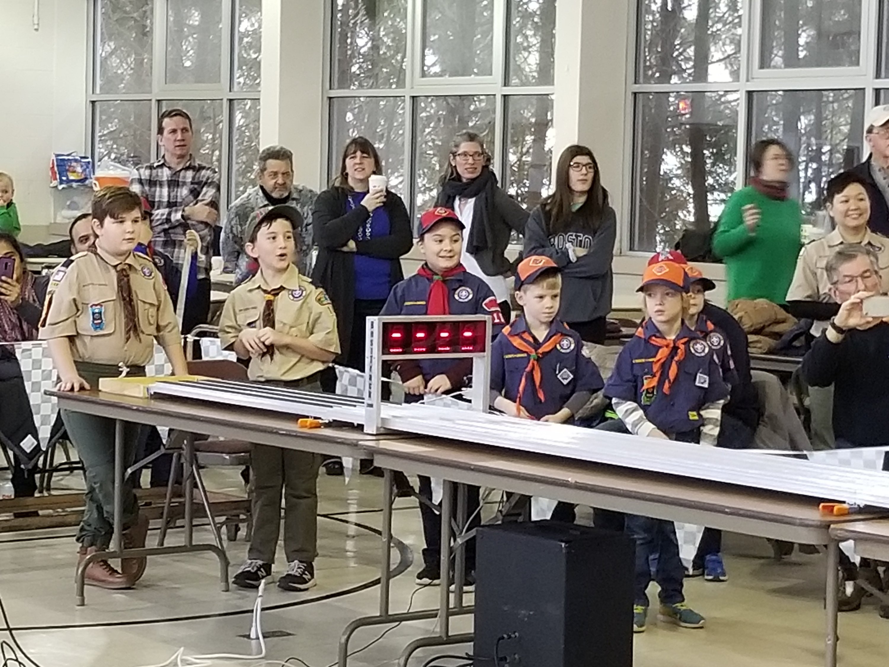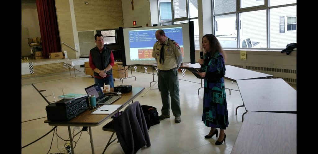 The derby opened with the Pledge of Allegiance, followed by Reverend Dr. Barbara Therese, from the Congregational Church of Grafton, giving a beautiful and inspiring invocation prayer. We thank you, Rev. Barbara Therese for coming to support the pack.