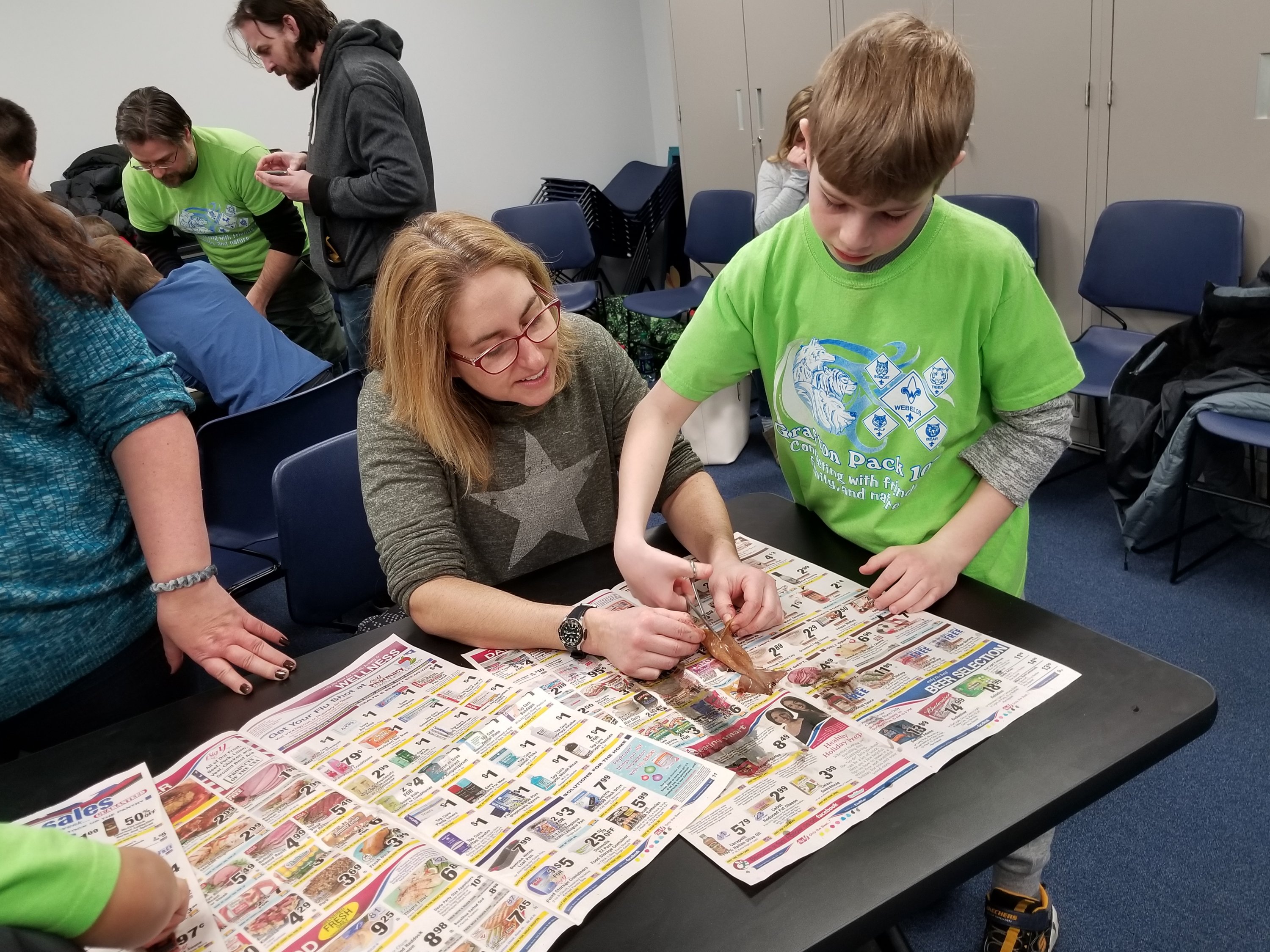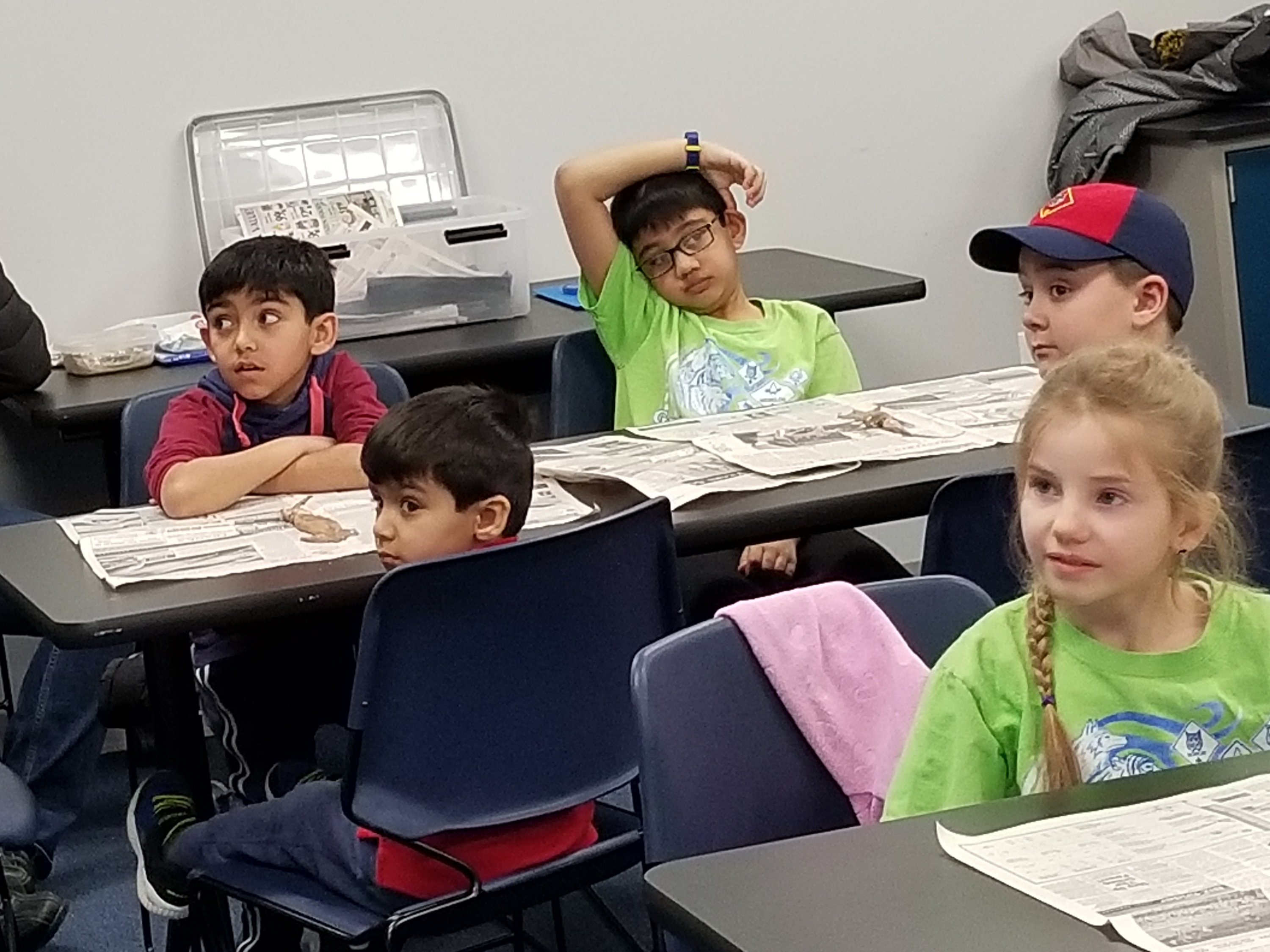 The cub scouts and their families were split into smaller groups and spent the evening rotating through 4 different learning stations.