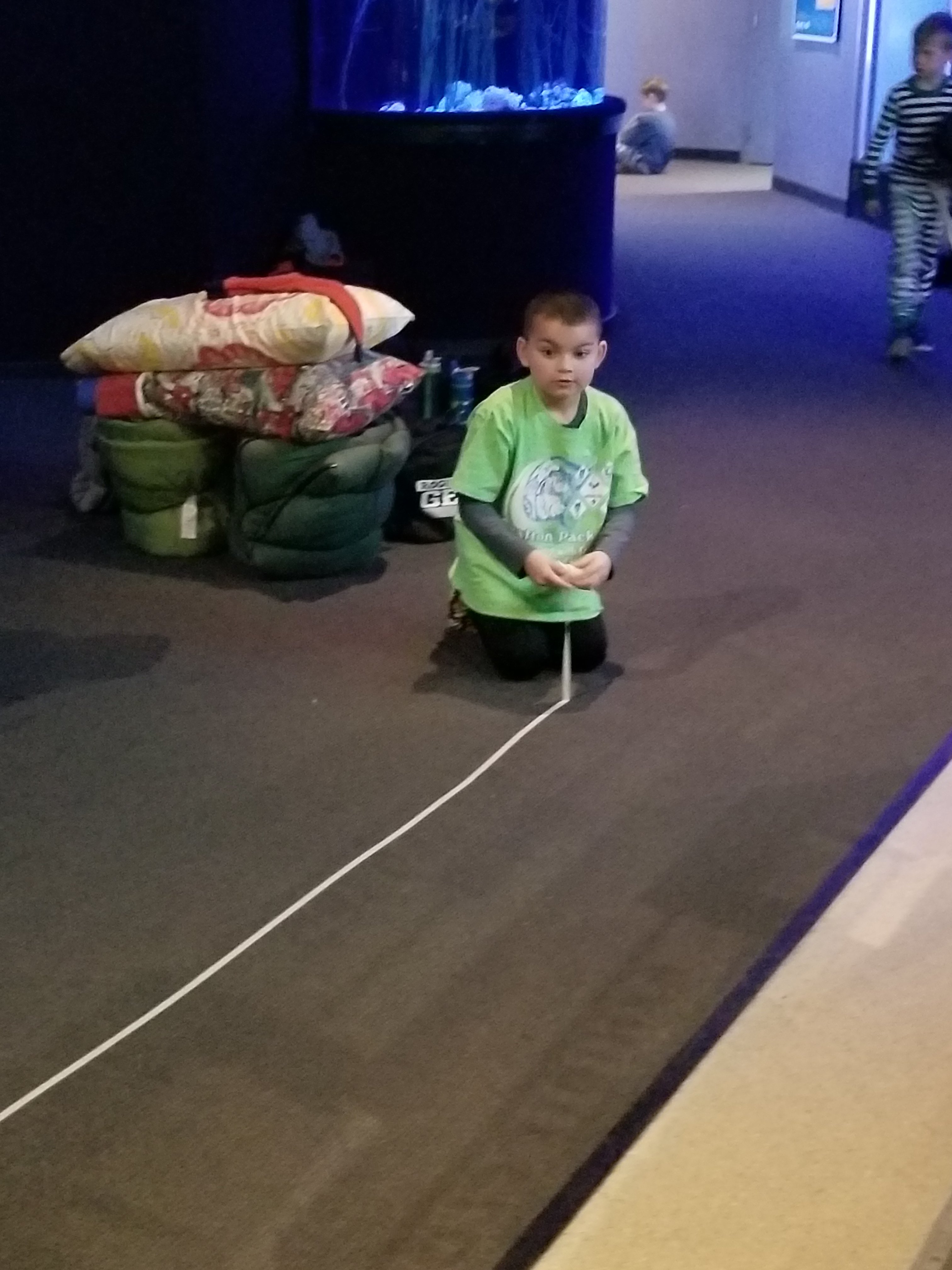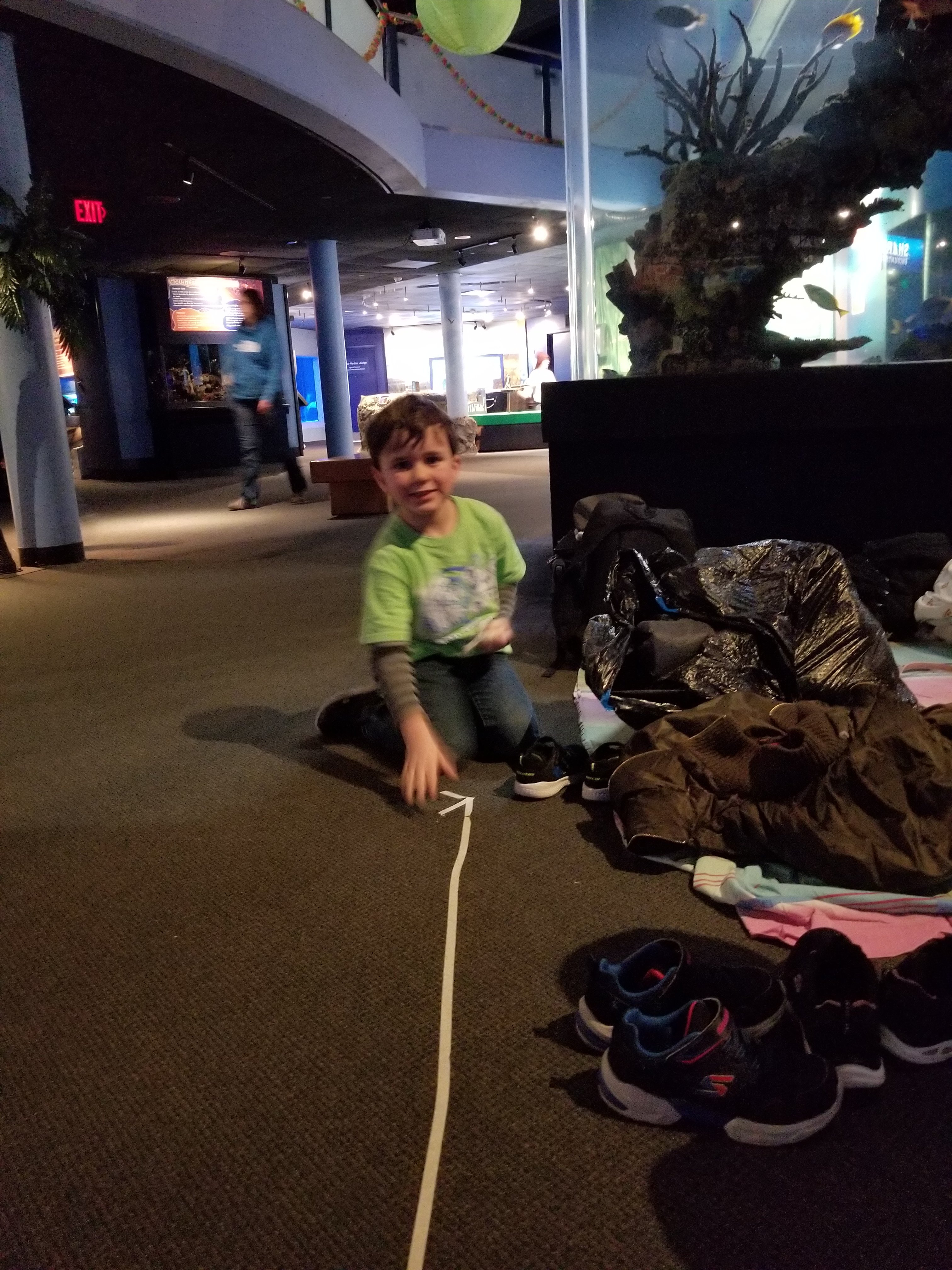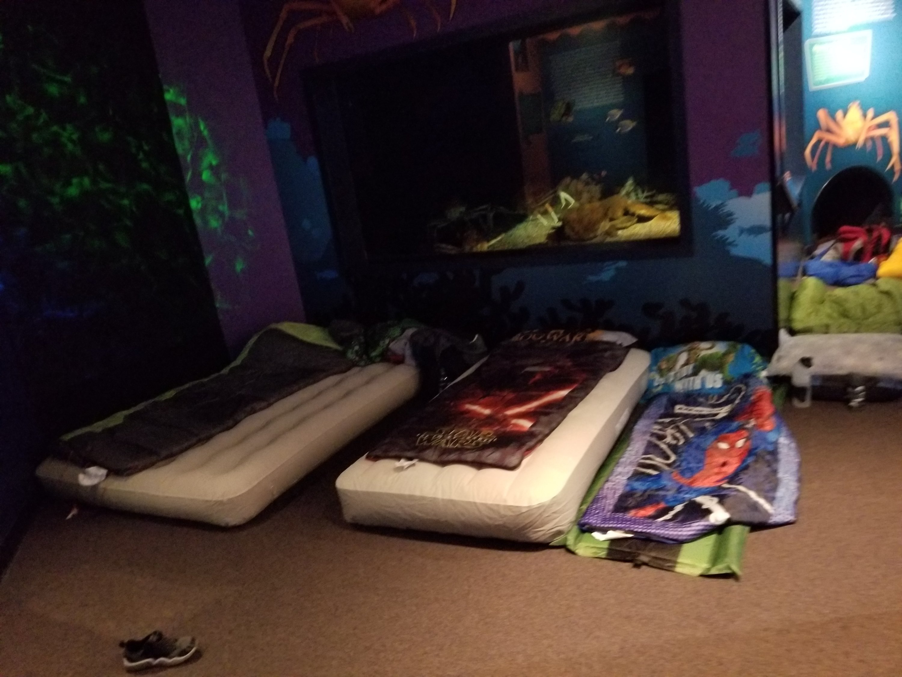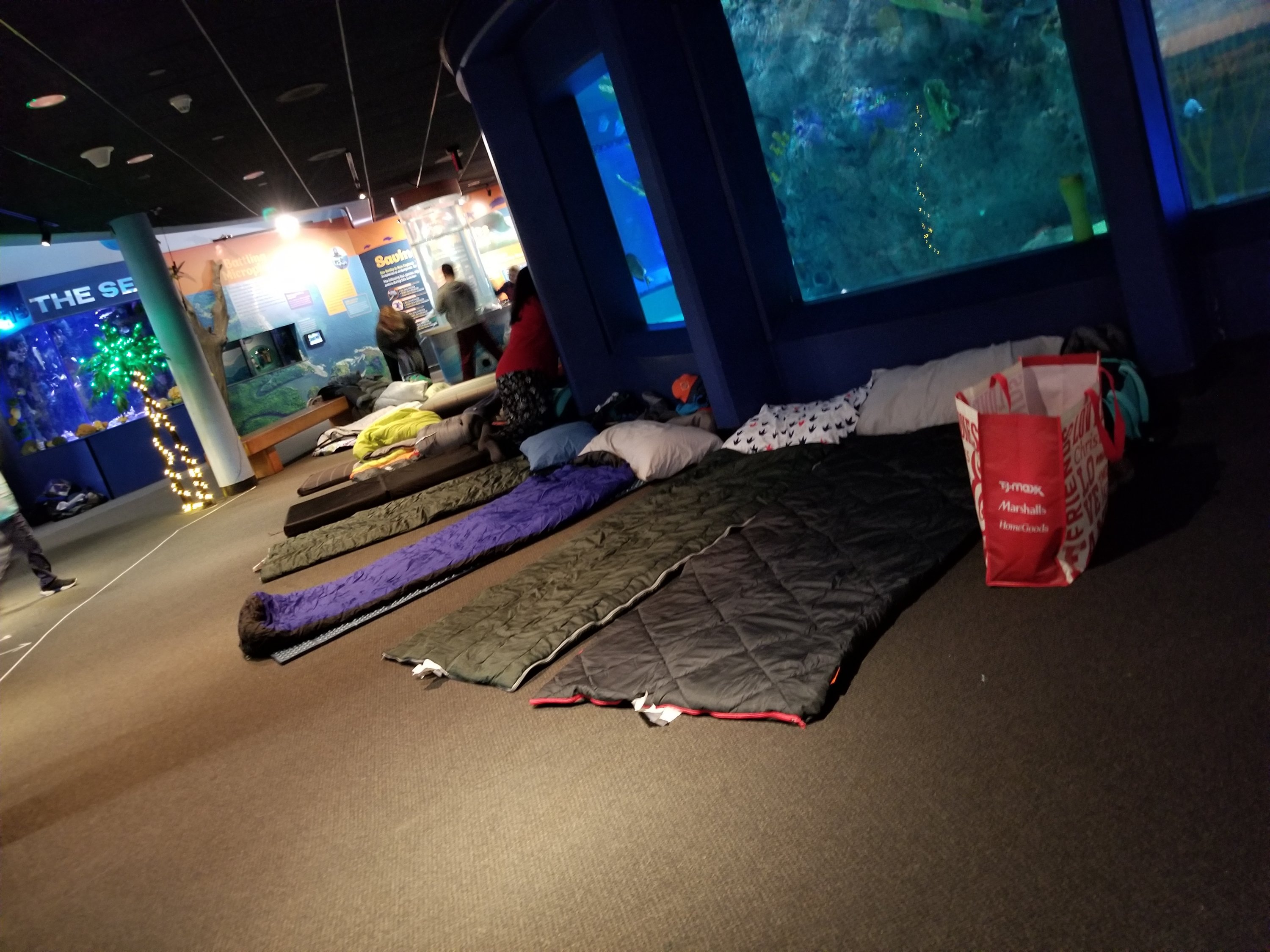 After the learning sessions, the group returned to the main aquarium building to prepare their sleeping space near all the aquarium displays. Lights out at 11pm.