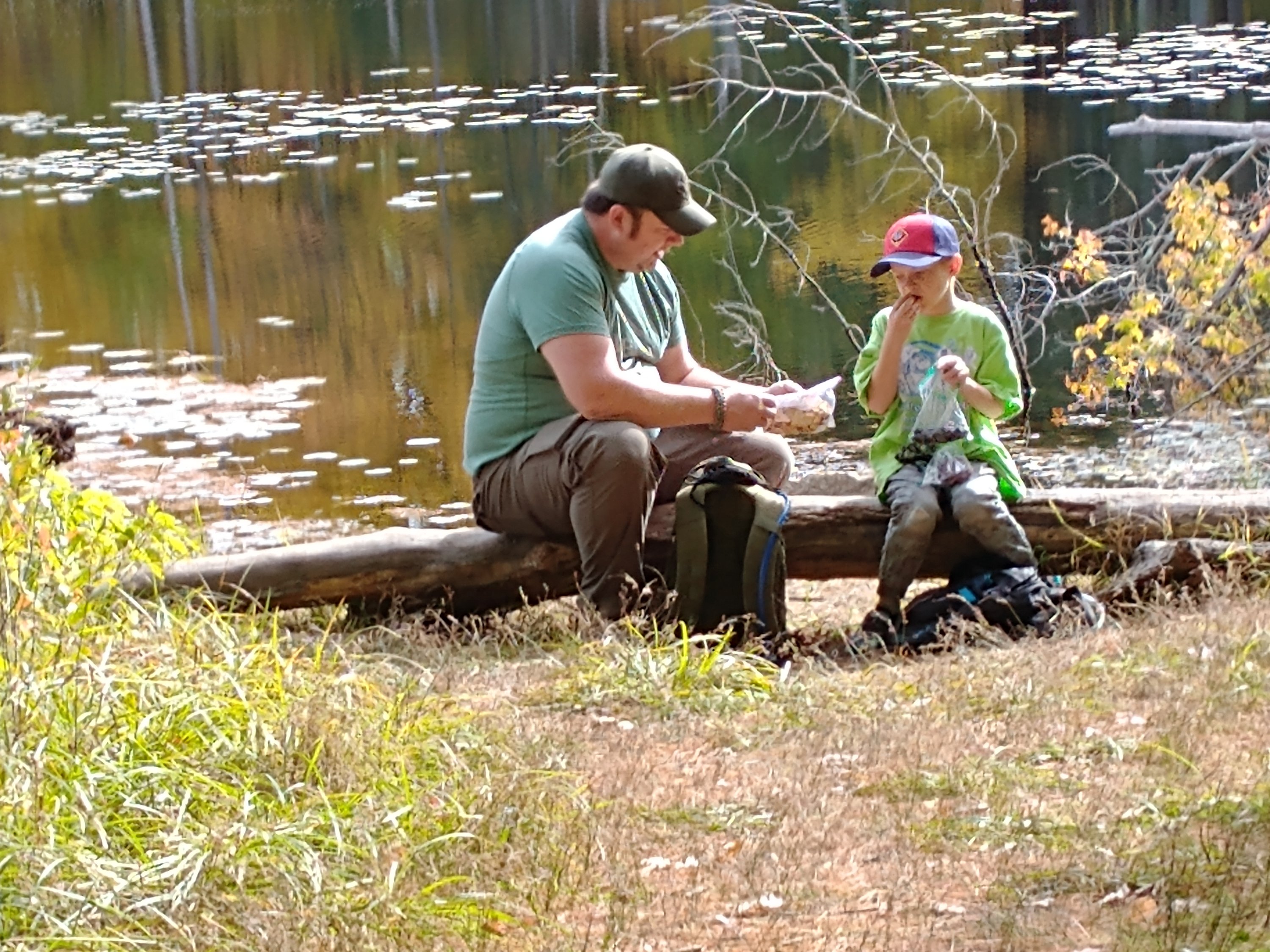 The cub scouts paired into buddies with their sibling and parents throughout the hike, and each buddy group took turns being the leader on the 3.3 mile hike. Ms. Tabitha talked about the presence or evidence of animals along the trail, including what they can hear, see, and smell. Some evidence can include animal droppings, known as scat, animal tracks, feathers, fur, scratches on trees, burrows, food scraps, and even a tree stump that was gnawed on by a beaver.