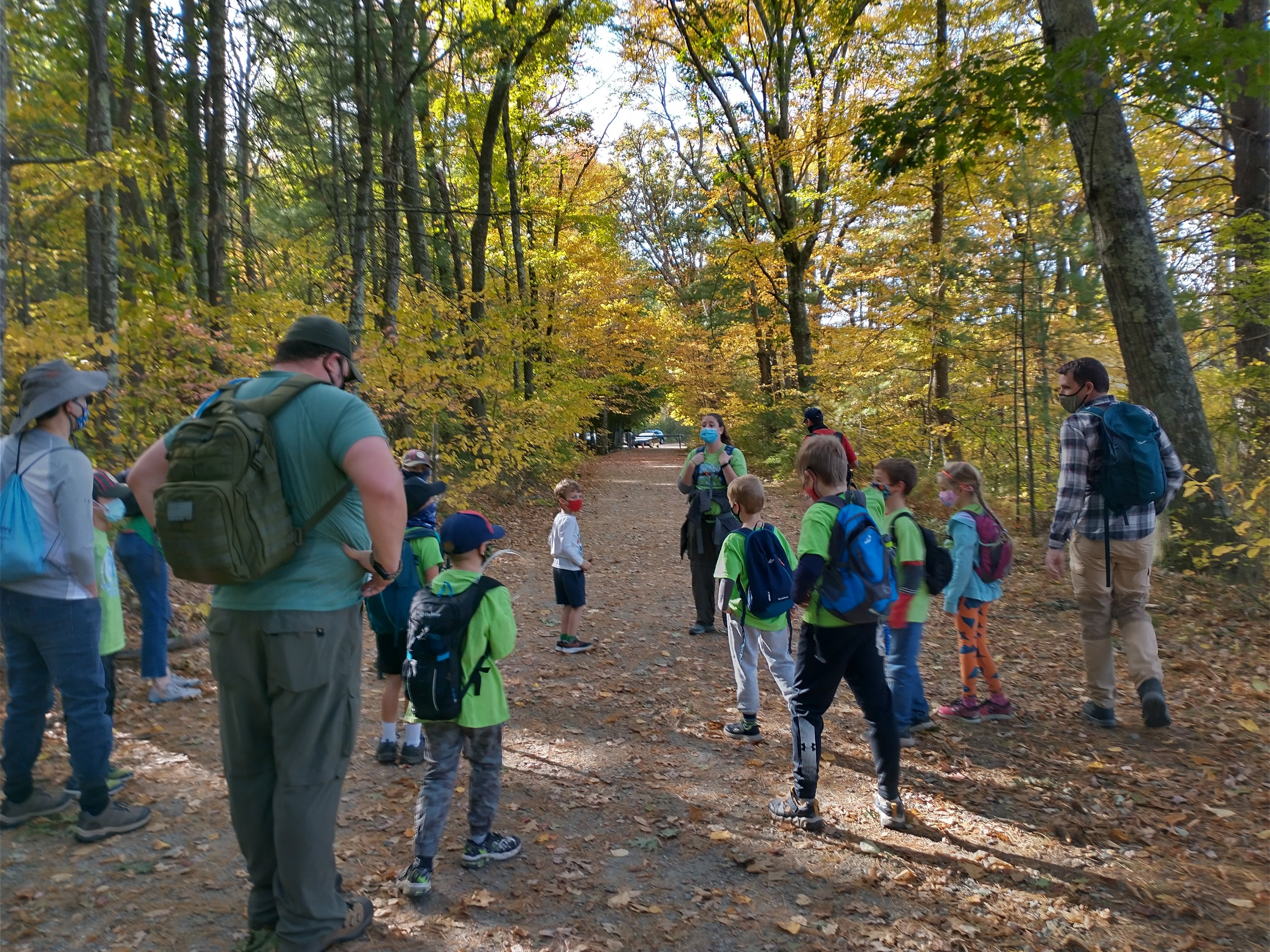 Cub Scout Pack 107 kicked off the first pack hike of the scouting year on Sunday, October 11, 2020, at Upton State Forest. It was the perfect warm, sunny, fall day during the Columbus Day weekend, with beautiful fall foliage and amazing landscape to take in. We had 12 scouts and their families, and one new scout family who joined us on the hike. Everyone had their masks on, and were socially distanced between families during the hike.