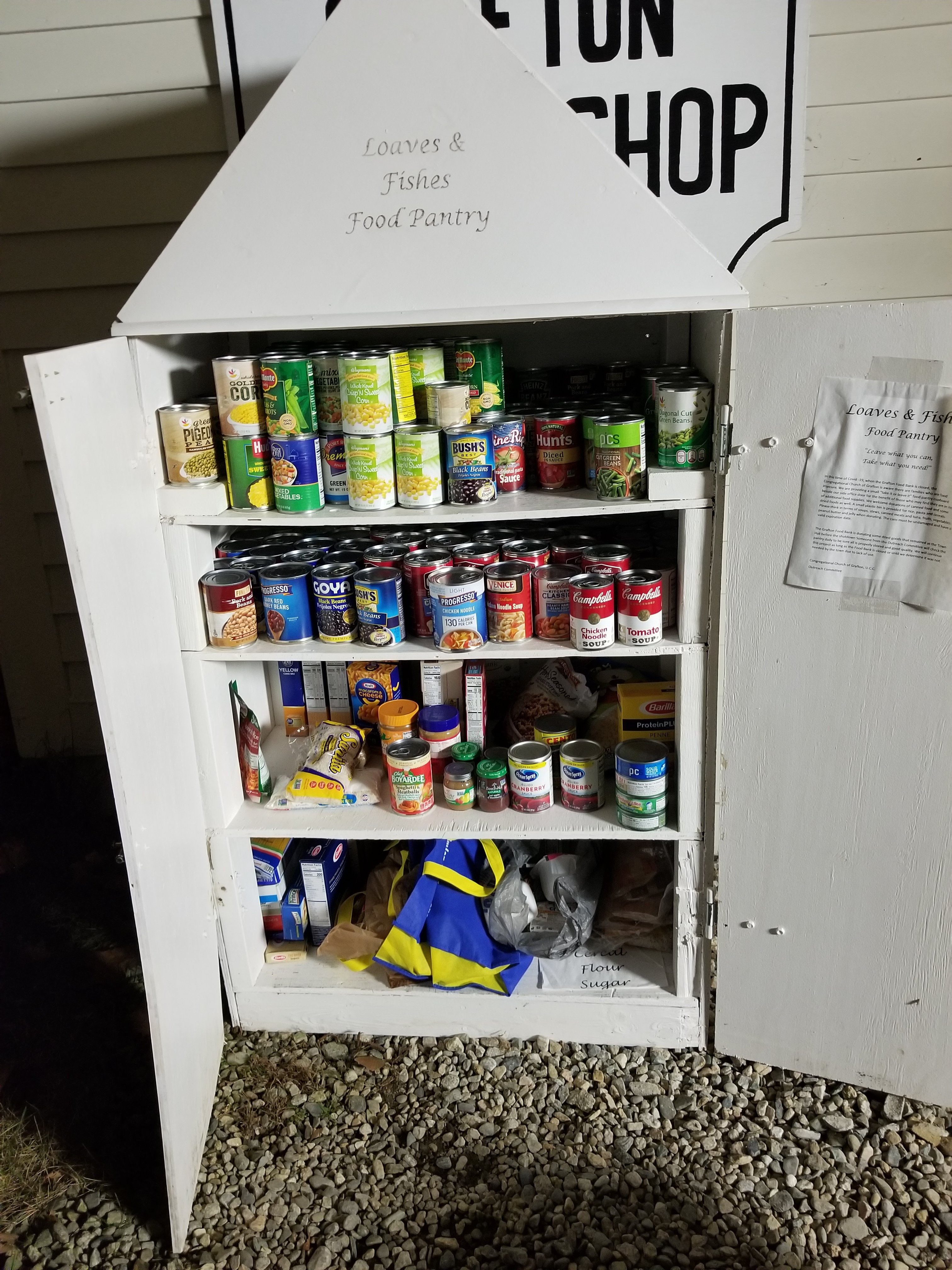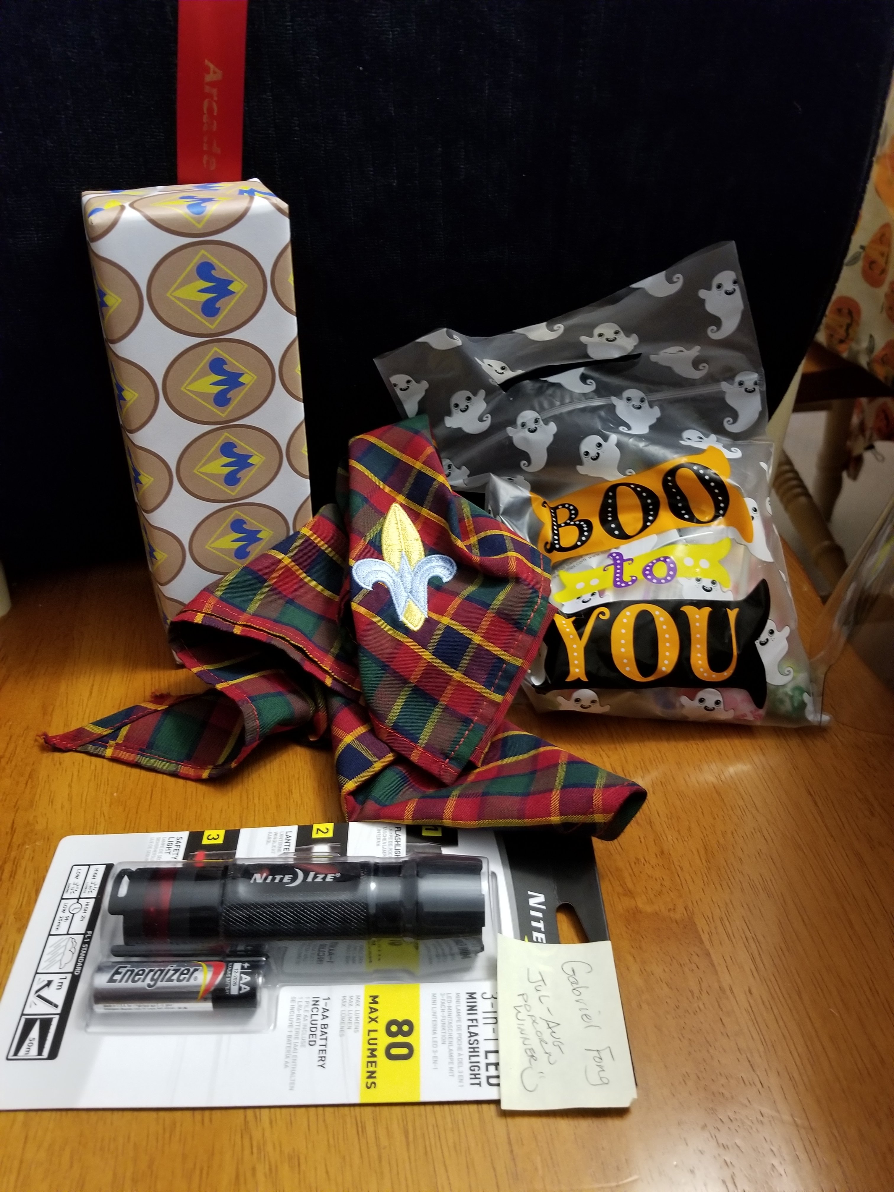 For the October Pack Meeting, we had a drive thru advancement ceremony, which was modified and postponed from the year June Advancement ceremony and campout. for the November Pack Meeting, the cub scouts and leaders were also invited to dress up in their Halloween costumes, and to bring canned foods for the Grafton Congregation Church Outdoor Food Pantry, in exchange for candy and a Pinewood Derby car kit. The cub scouts also received their new neckerchieves for their new rank, as well as walking sticks and awards for achievements earned in the last month. This event collected more than a big plastic bin full of canned food for the Food and Loaves Food Pantry, located outside the Congregational Church. The COVID pandemic has made economic hardships for many families. Any family in need in, are free to take some food, and anyone who wants to donate, can leave non-perishable foods in this pantry.