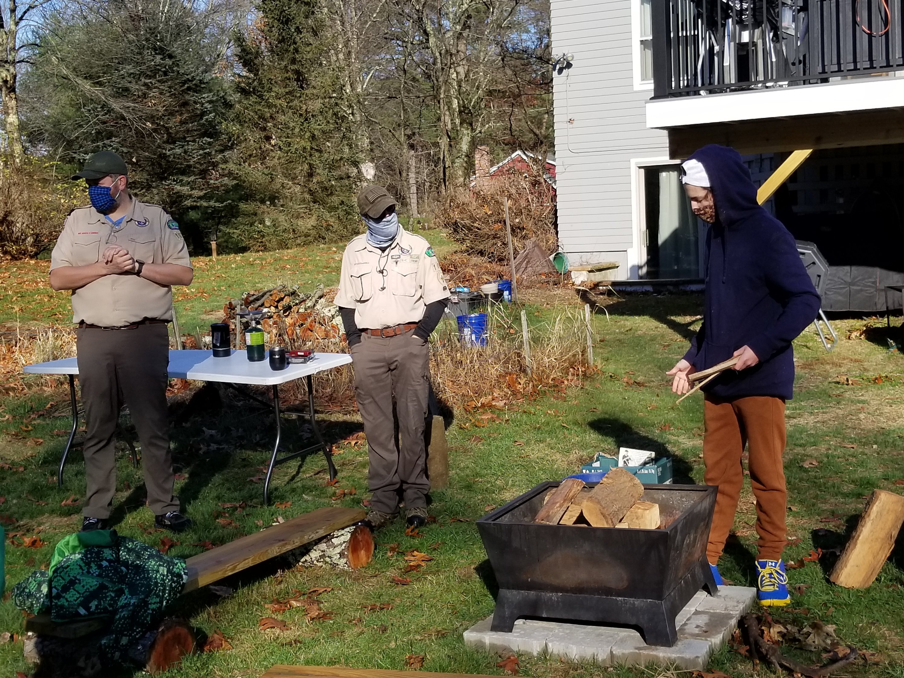 Our dens have been able to work on various advancement adventures in groups outdoors as needed, and on Zoom when necessary. In October the Arrow of Light Scouts were able to work on their Camper Adventure at a campout with BSA Grafton Troop 107 at Treasure Valley Scout Reservation. Theyn also went on a den hike to Mount Monadnock.