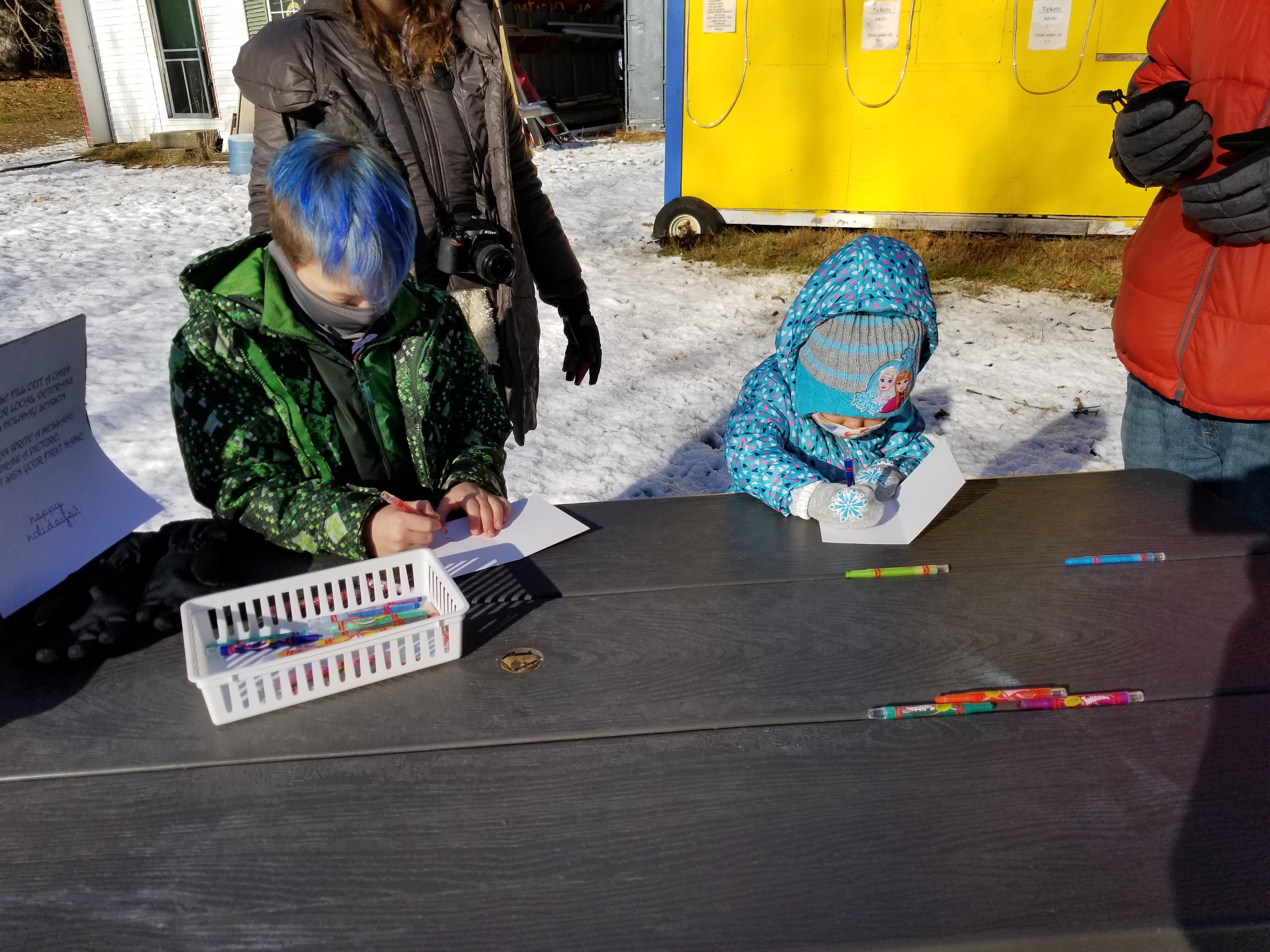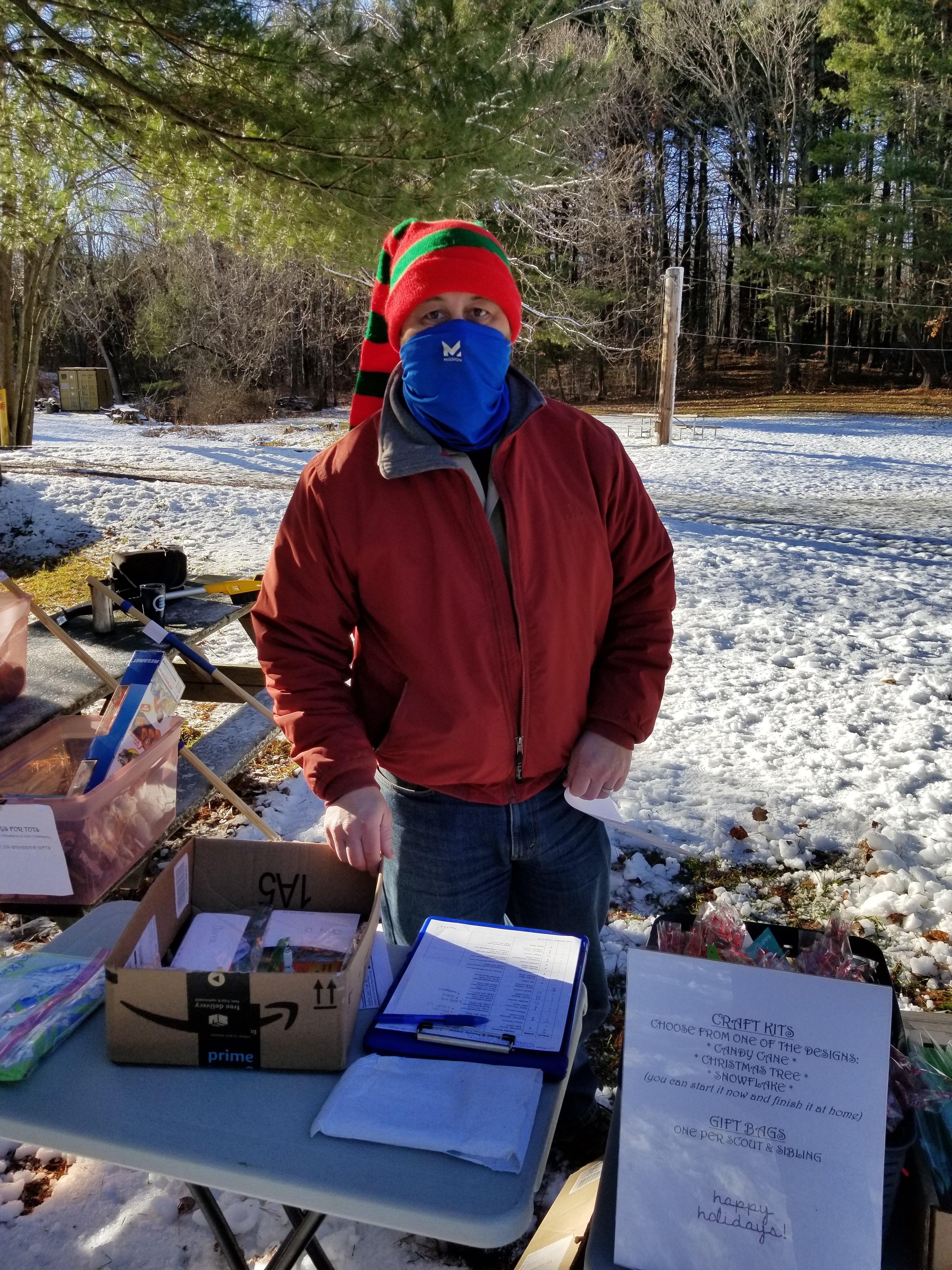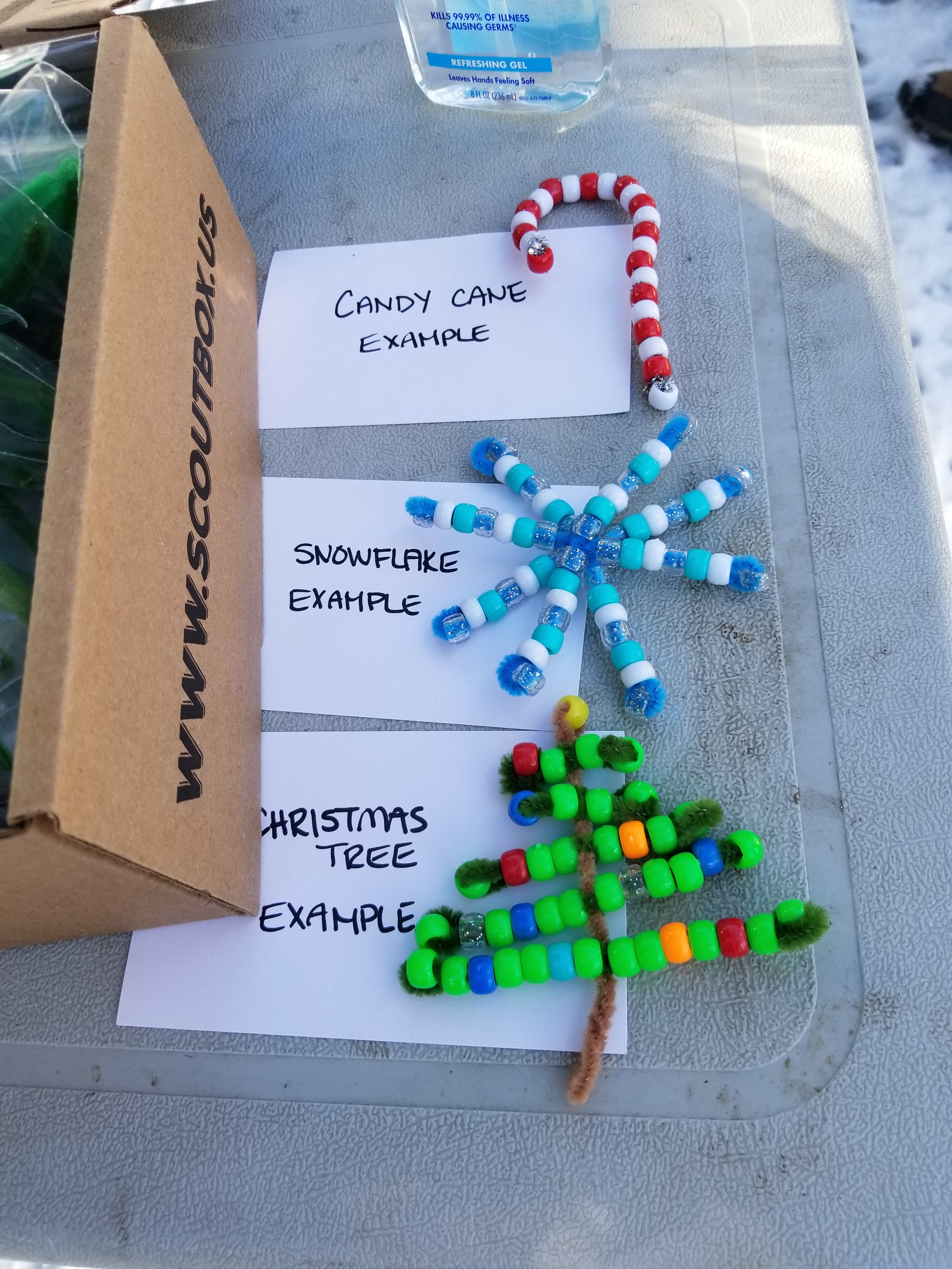 The December Pack Meeting was holiday themed and held at the Grafton Lion’s Club. Each den arrived in 30 minute intervals. Cub scouts received awards for hiking miles, and completed adventures, and they each received a holiday treat bag. They made holiday greeting cards for the veterans, and creative bead ornaments. Cub scouts and their families had the opportunity to take photos with our special guest, Santa Claus, followed by a hike along the trail behind the Lion’s Club field.Pack 107 also collected donations for Veterans, Inc, Project New Hope, and Toys for Tots. Cub scouts learn that a scout is helpful! Special thanks to Ms. Tabitha, our Cubmaster, for taking on the task of being our “special guest”, Mr. Rob Lane, for being the official elf, Mrs. Christine Gaspar for being the craft table elf and photographer, Mr. Chris Nichols for being the official photographer for this event! We thank the Lion’s Club for allowing us to use the field hold this event!.
