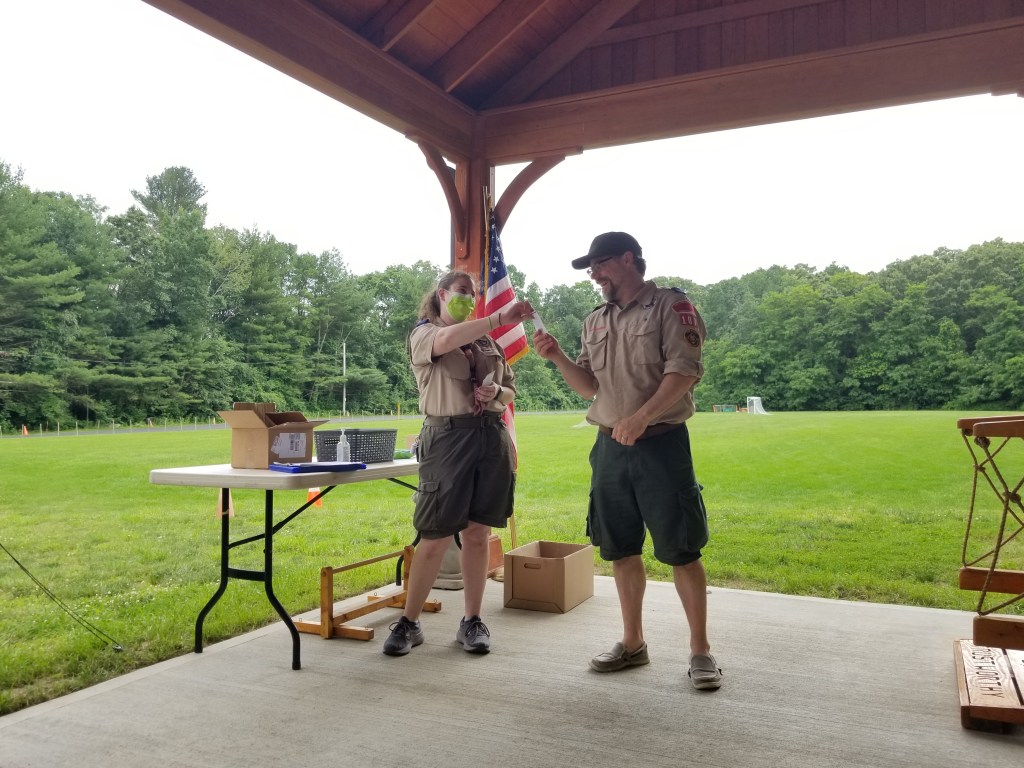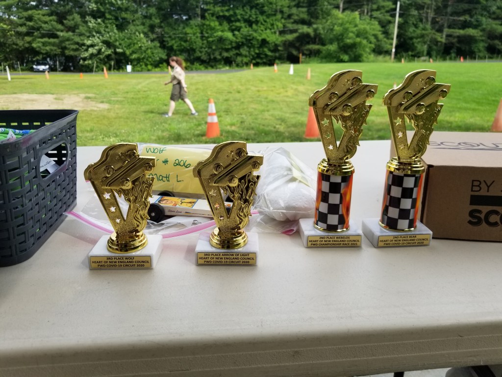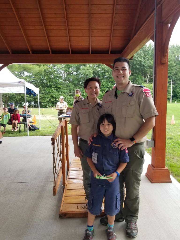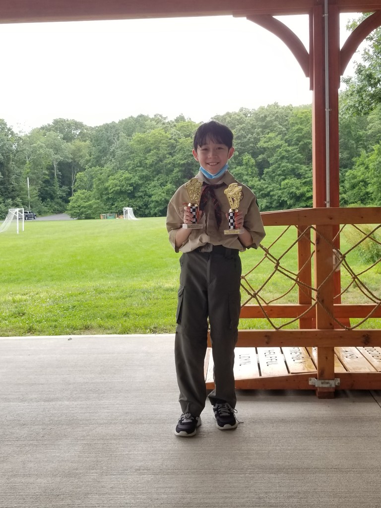 In addition, this year’s Council Pinewood Derby winners for 2020 and 2021 were presented with with their trophies. Congratulations to Steven L. and Matthew L. for earning the 3rd place trophies for their rank in the 2020 race., and to Gabriel F. for winning 2nd place for his rank for both 2020 and 2021 races.