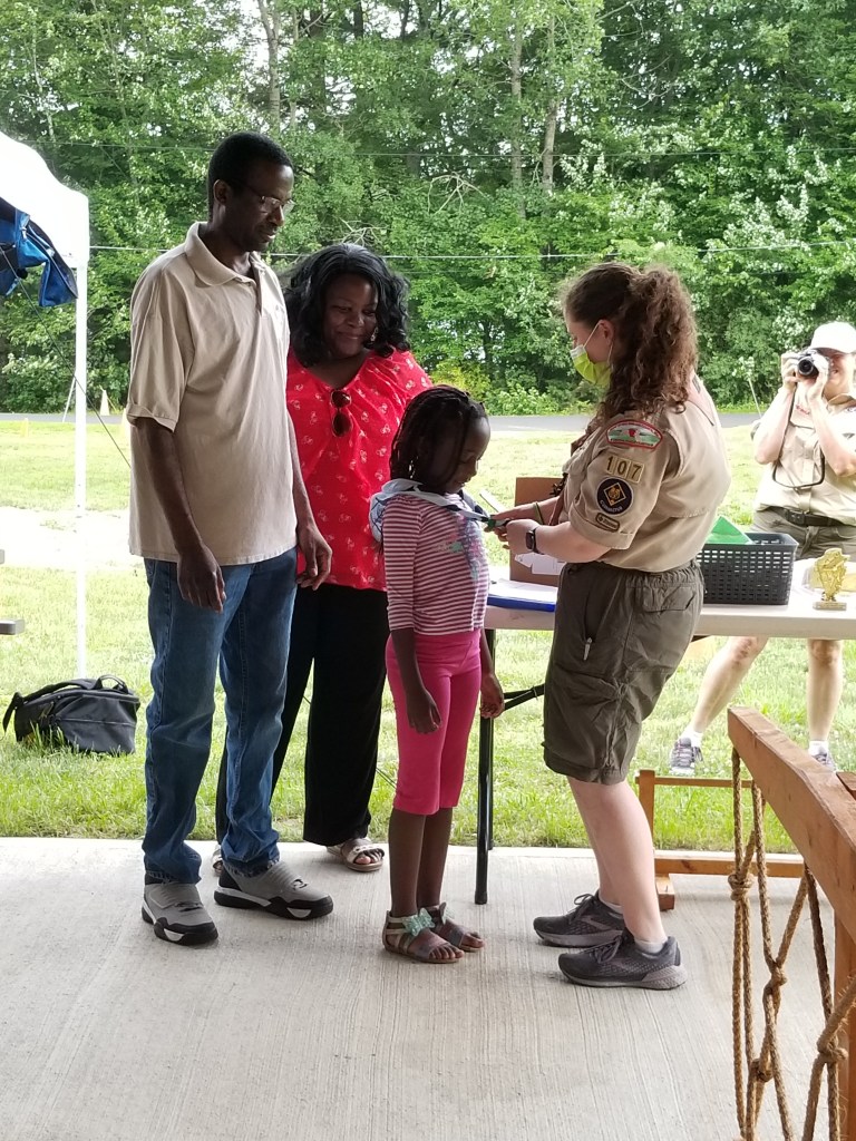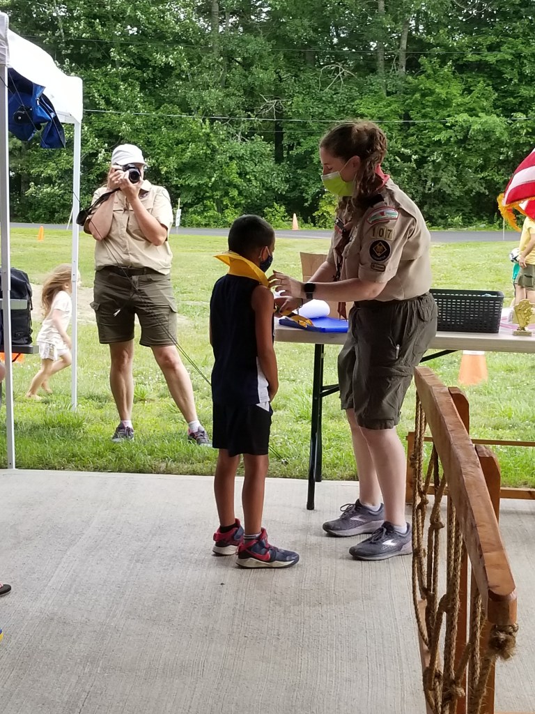 At the Advancement Ceremony, Pack 107 was excited to officially welcome all the new Scouts that signed up at our May and June Scouting Fun Fest. It was so thrilling to see all the smiling faces of the eager new Cub Scouts, and their families, as they were presented with their new neckerchiefs. A few of the new Cub Scouts already started earning hiking miles and community service hours, and one new scout even earned his Recruiter patch! We are so happy to welcome Oliver N., Oliver D ., Christian E., Andrew N., Jacob H., Gabriel R., Tatenda N., Max. V., and their families to Pack 107!