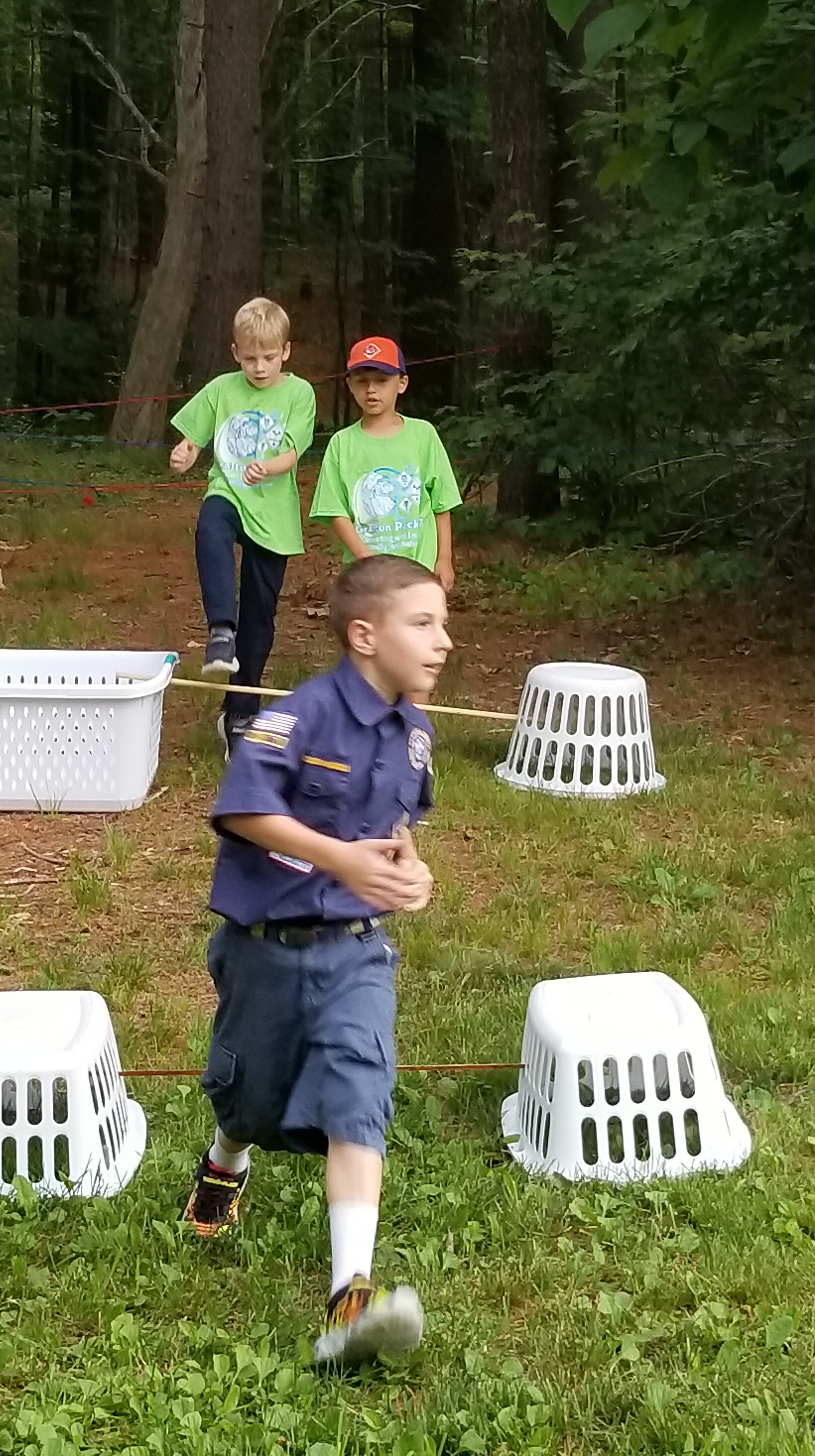 After dinner, the Scouts were treated to an epic “Scout Ninja Warrior-like” obstacle course starting with navigating through a rope web in the forest, followed by commando crawling through a low pass, and tunnels, beach ball relay balancing a beach ball on a hoop net, basketball hoop toss, pool noodle weave run, ping pong ball toss, and hula hoop jump. This was the masterminded and set up by our talented Mrs. Christine Gaspar! Thank you so much for all the planning and preparing that went into this!! It was a big hit!! As if the obstacle course didn’t tire them out, the Scouts continued afterward with hula hoop contests, hide and seek, tag, and discovering fireflies after sun set.