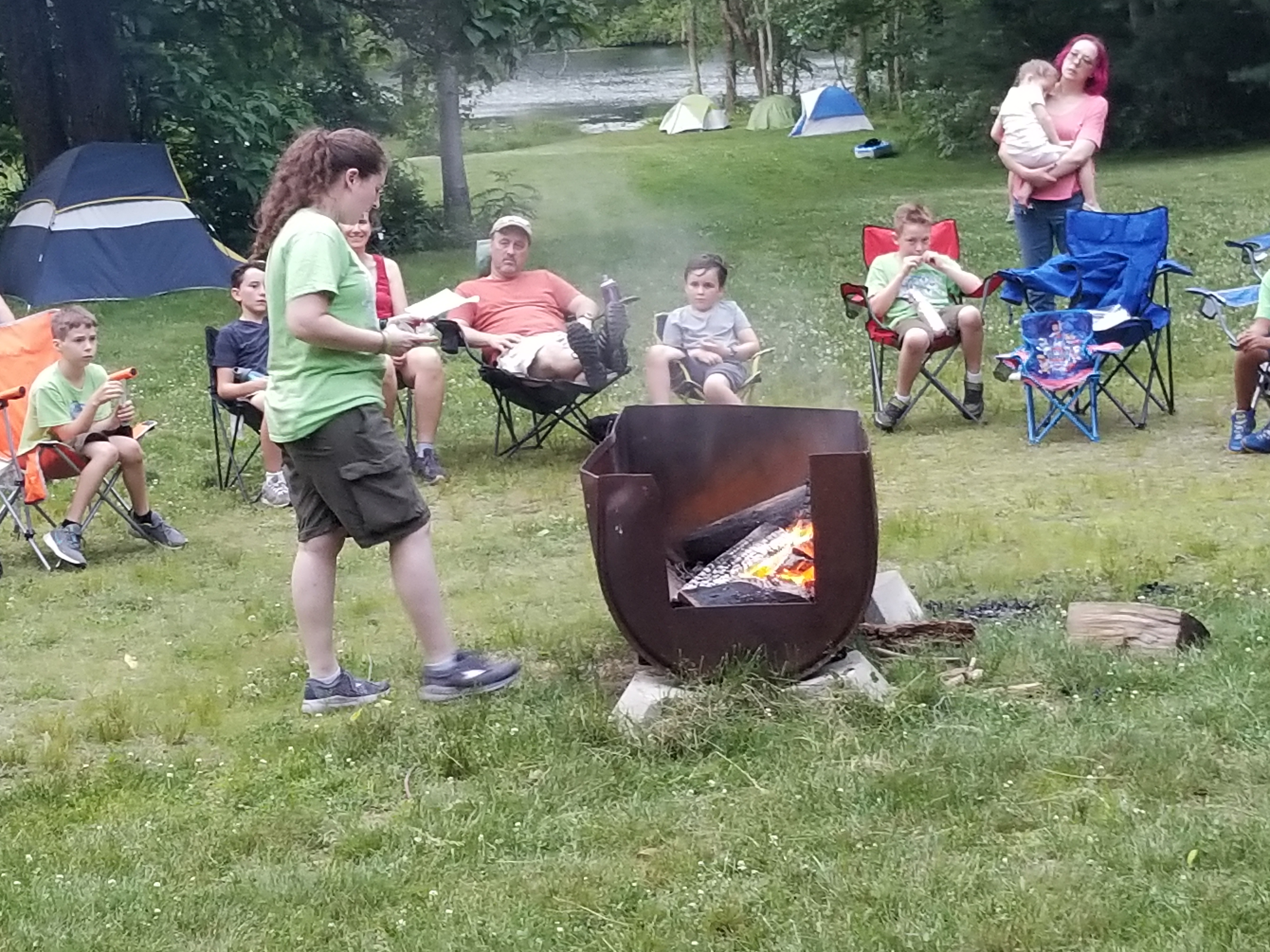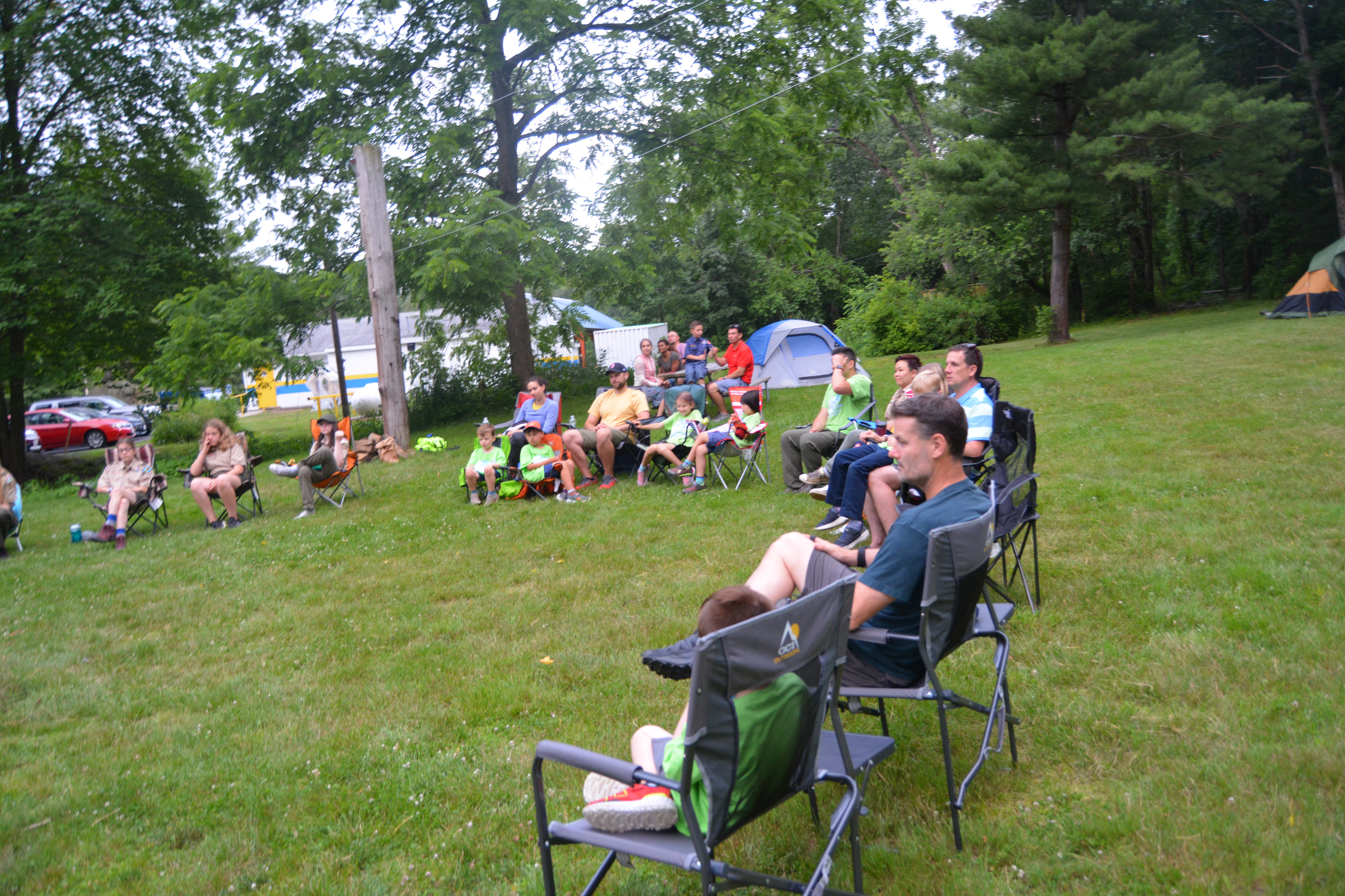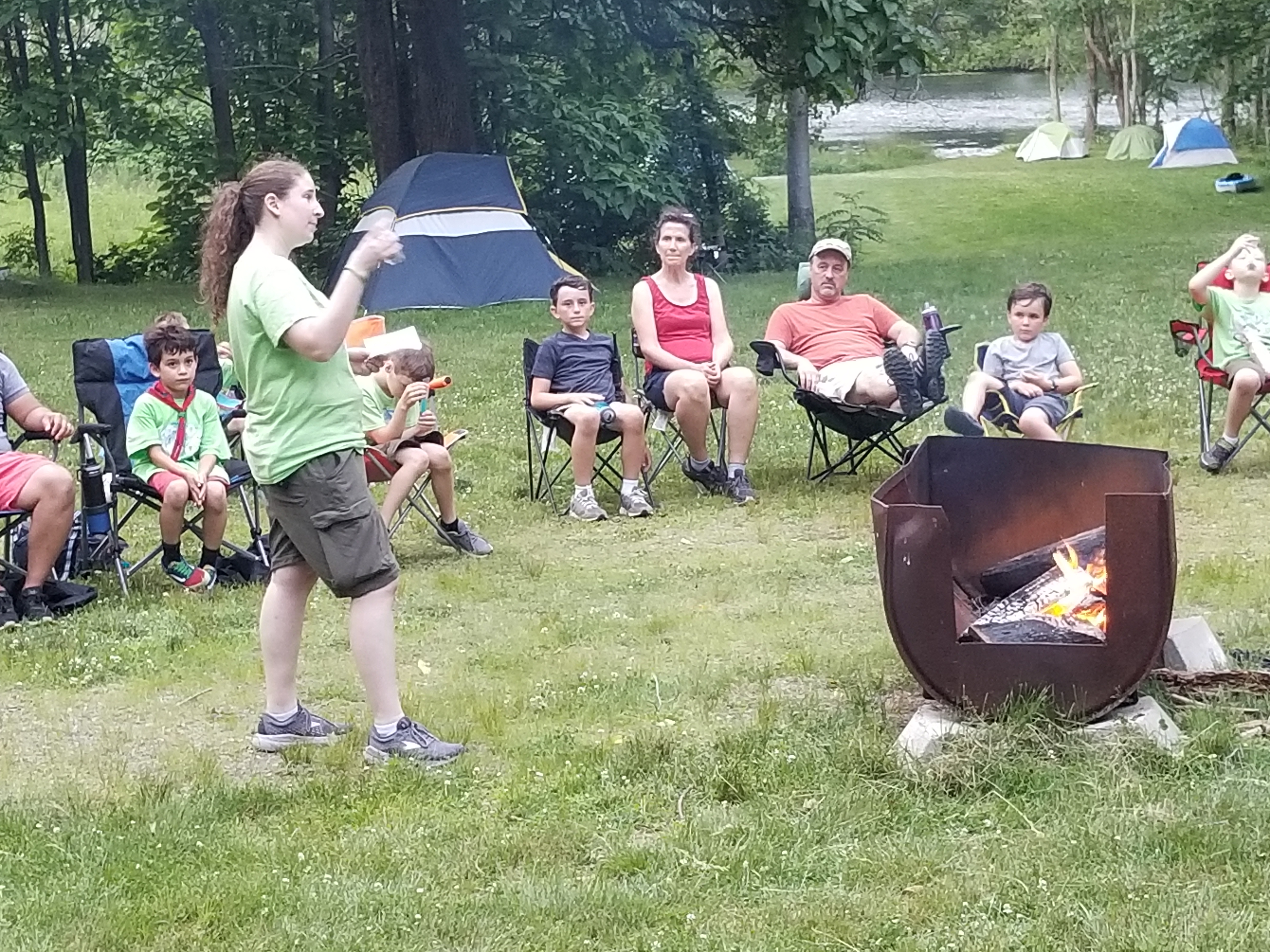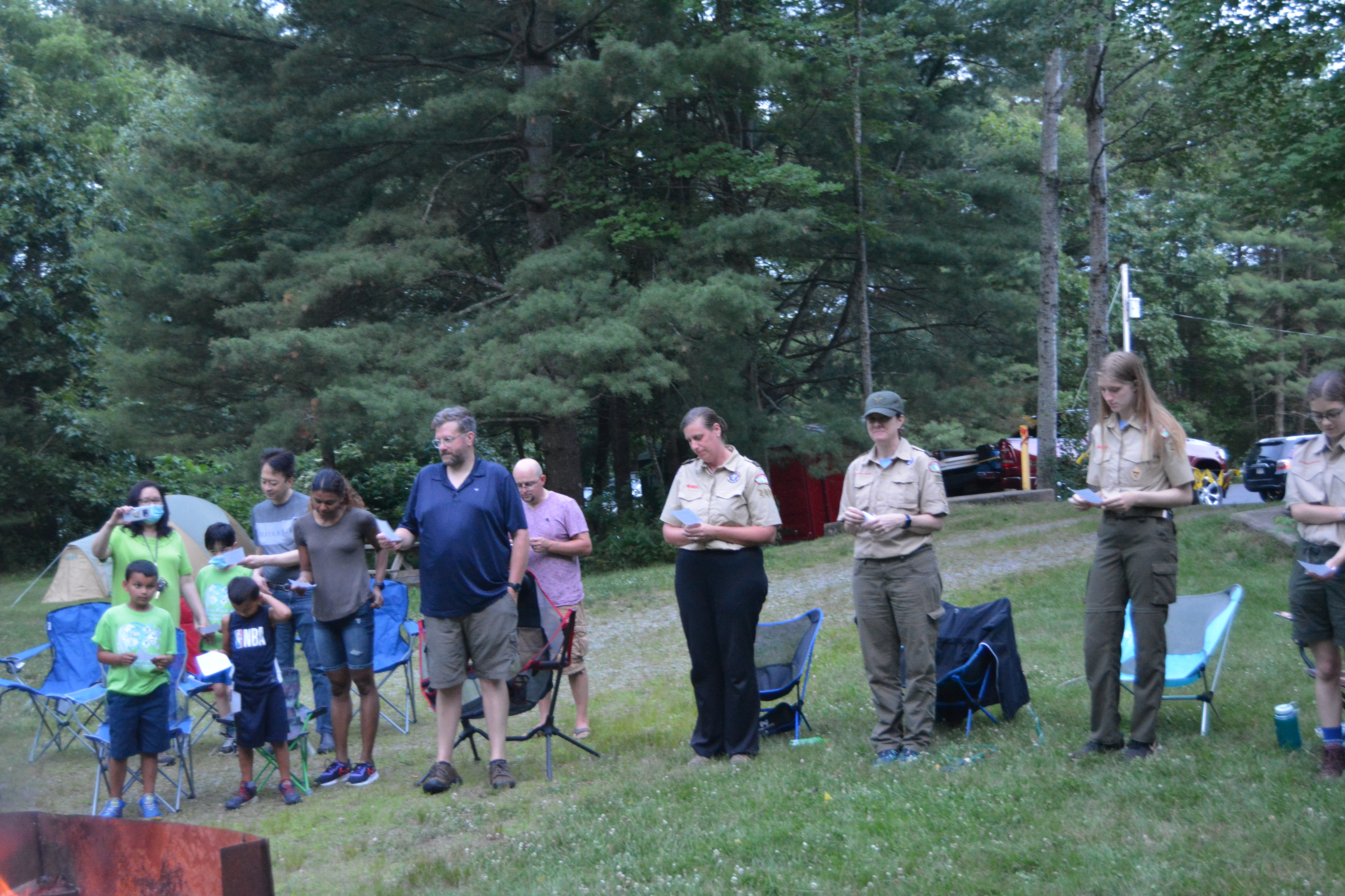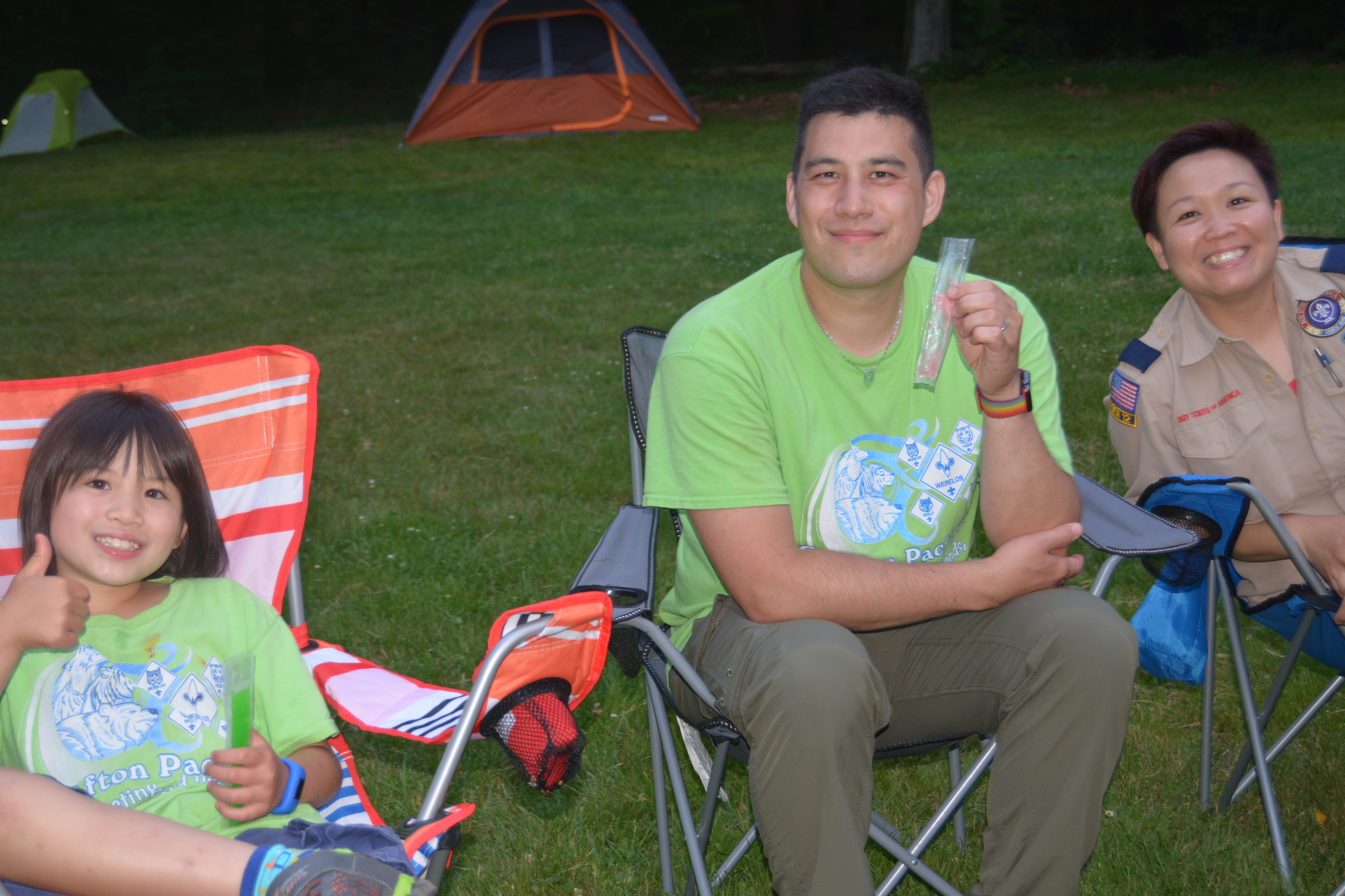 After all that fun, everyone enjoyed a cooling and quenching freezy pop treat, before the start of the campfire program. It started the Campfire Ash Ceremony (also known as a Friendship Ash ceremony) , and is a ritual associated with Scouting meant to convey the long history and fellowship associated with the movement. Attributed to Lord Baden-Powell, it is said that he would take a small amount of the ashes from the campfire he was at, and would take them to add to the next campfire he attended. The Scouts from Troop 2019 performed campfire side skits, followed by Ms. Tabitha’s jokes and riddles, and then the Cub Scout and their families were invited to share any jokes or skits. It was amazing to see so many Scouts who wanted to share. Even our newest and youngest Scouts came out to share! It was amazing to see so many new friendship develop already!