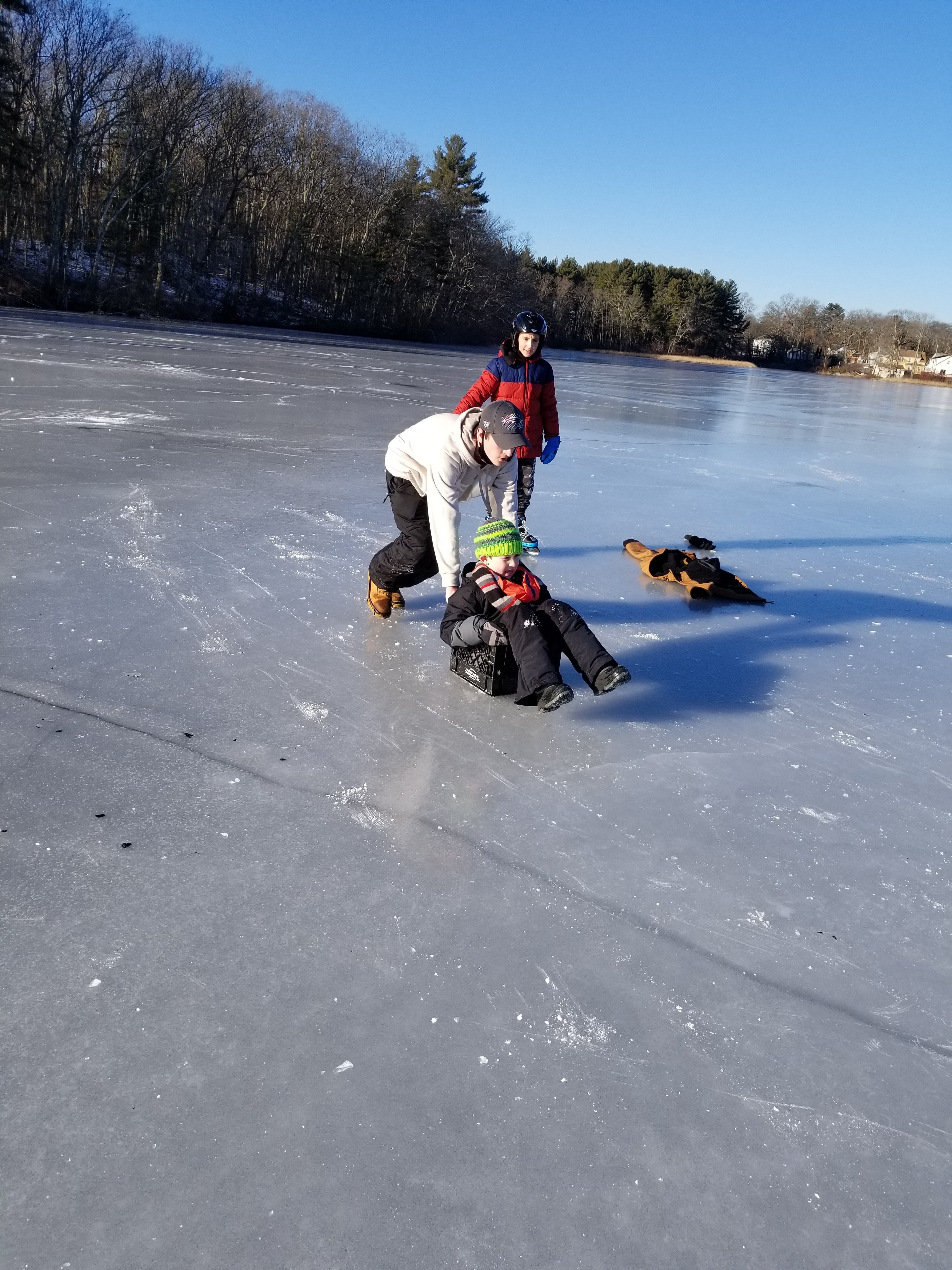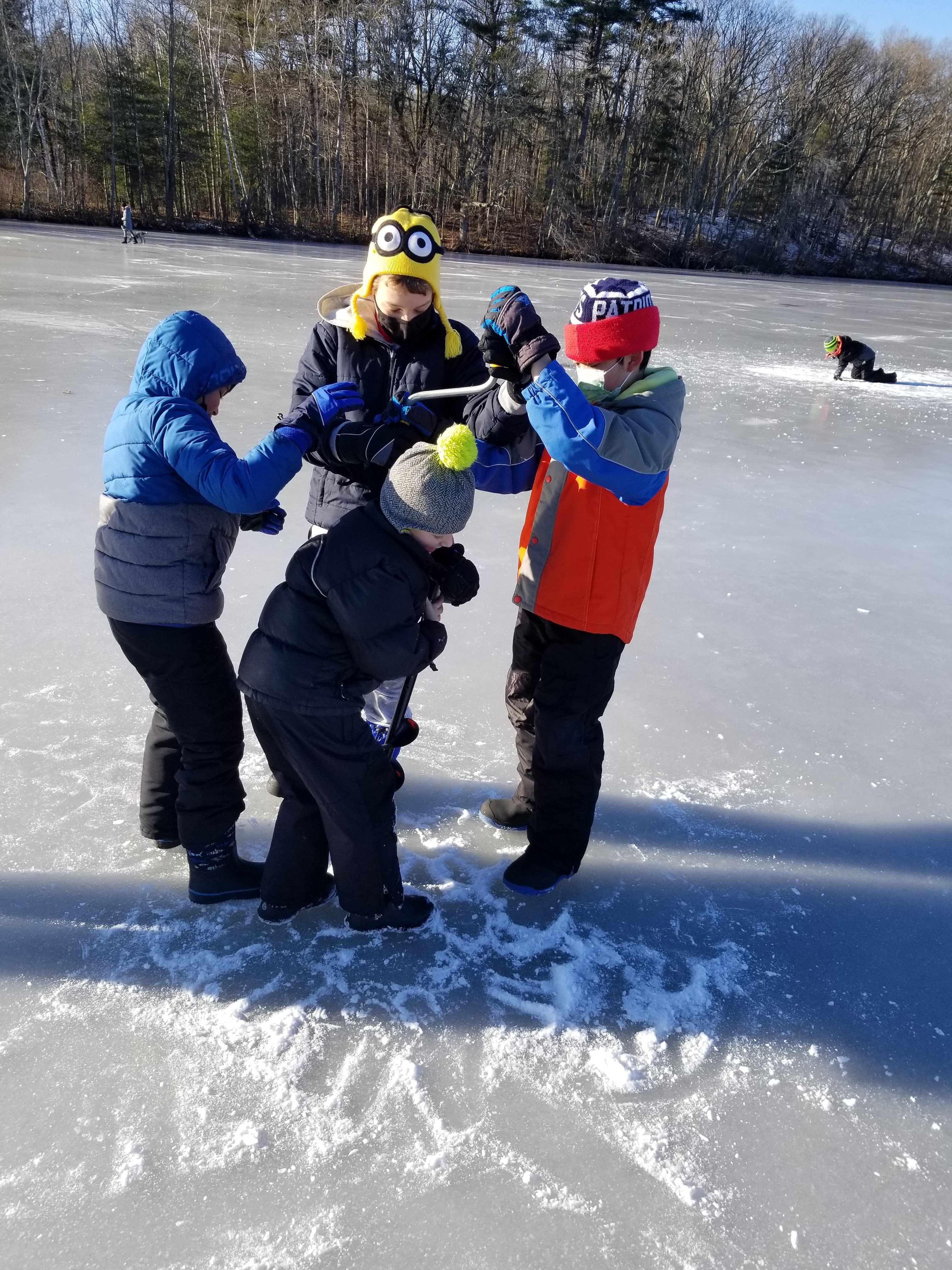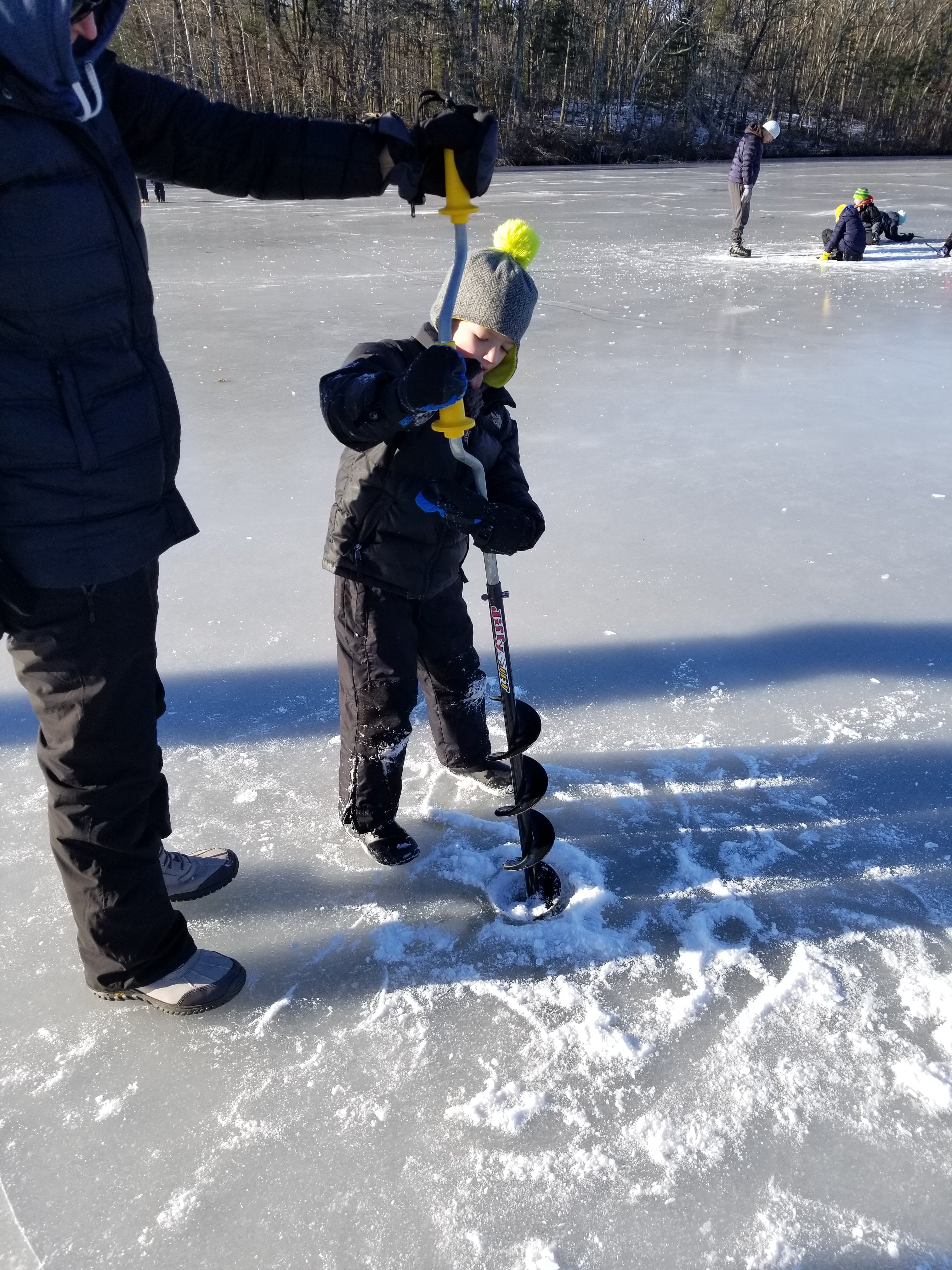 Some families brought ice skates to enjoy a little ice hockey and ice staking on the frozen lake. Despite temperatures in the mid 20s degree Fahrenheit, everyone had a great time and many Scouts did not want to leave, even after 3 hours in the outdoors! We can wait for a next Scout ice fishing event!!