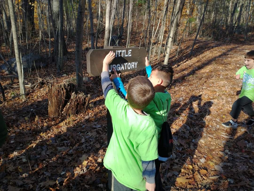 On November 6th, our Pack held this month’s hike at Little Purgatory.. It was a fun 2 and a half mile hike on a gorgeous warm November day.. The hike started with reciting the Outdoor Code and Leave No Trace Principles. Our Cubmaster, Ms. Tabitha had the Cub Scouts buddy up, and each buddy group took turns leading the group on the trail. We took a snack break at the half way point near the waterfall and the cool fallen tree. When we finished we took some time to enjoy the rock slide for a few minutes before departure. It was a picture perfect day for enjoying the outdoors..