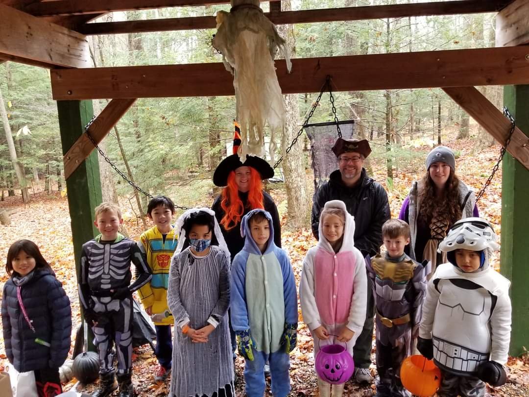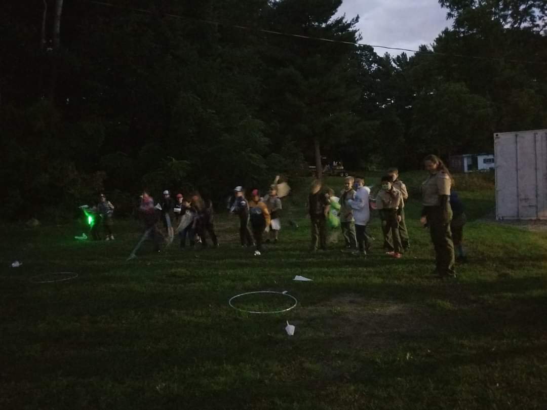 When Halloween is on a weekend, what better way to get the celebration started than to have a campout, and join in some Spookerie fun at Treasure Valley Scout Reservation! Our Pack arrived at the campsite on Friday evening 10/29/2021, set up camp, and then our Scouts worked together to gather branches, and small logs to build a campfire to stay warm during this cold night, and to roast marshmallows to make S’mores for that evening’s cracker barrel. It was the perfect setting for telling Halloween stories, and do some Spookery planning! Rain was in the forecast but luckily it didn’t start until long after everyone was tucked away in their warm sleeping bags, fast asleep.