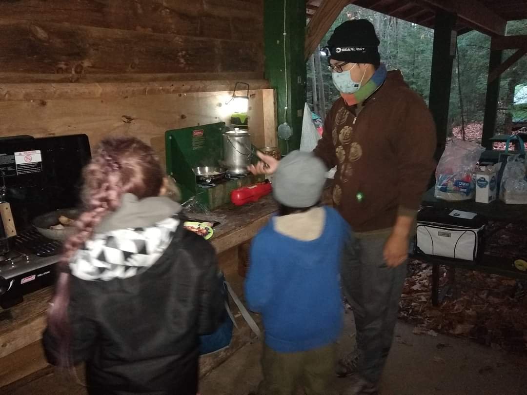 In the morning our Welebo Scouts, Lilly and Jazzy worked on their Cast Iron Chef adventured and treated the Pack with a warm hearty breakfast of eggs, bacon and sausage, hot chocolate and oatmeal, under the supervision of their dads.They even had coffee for the adults!.
