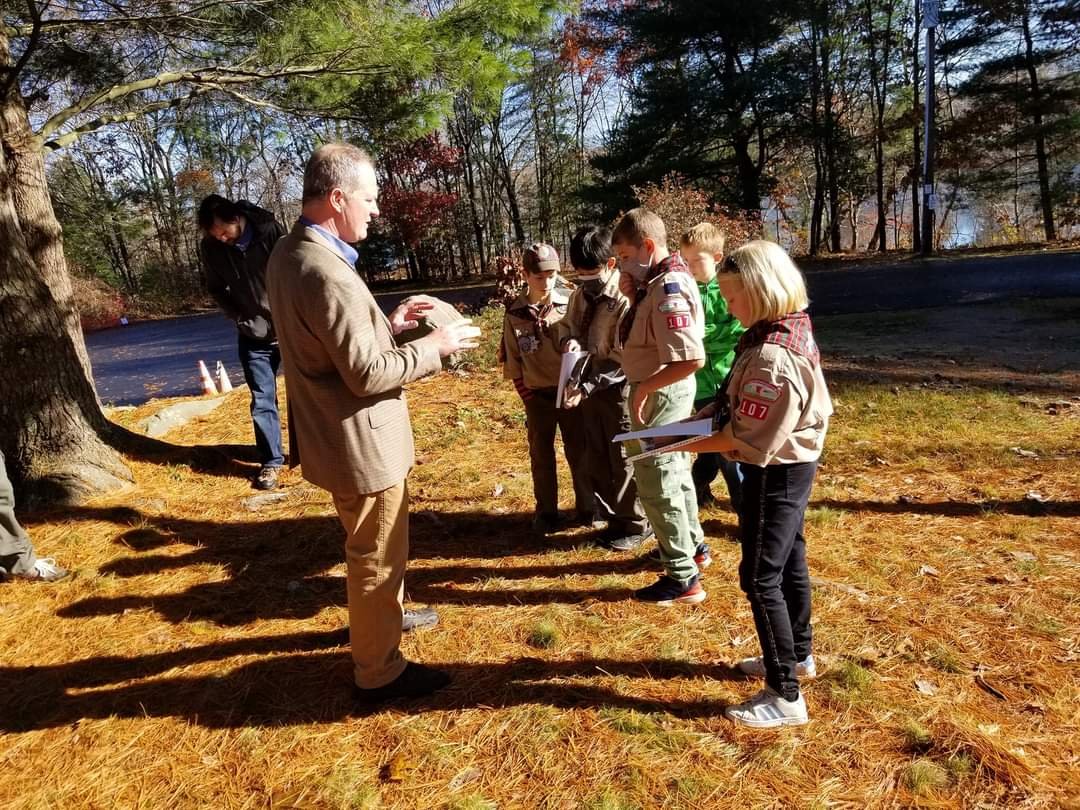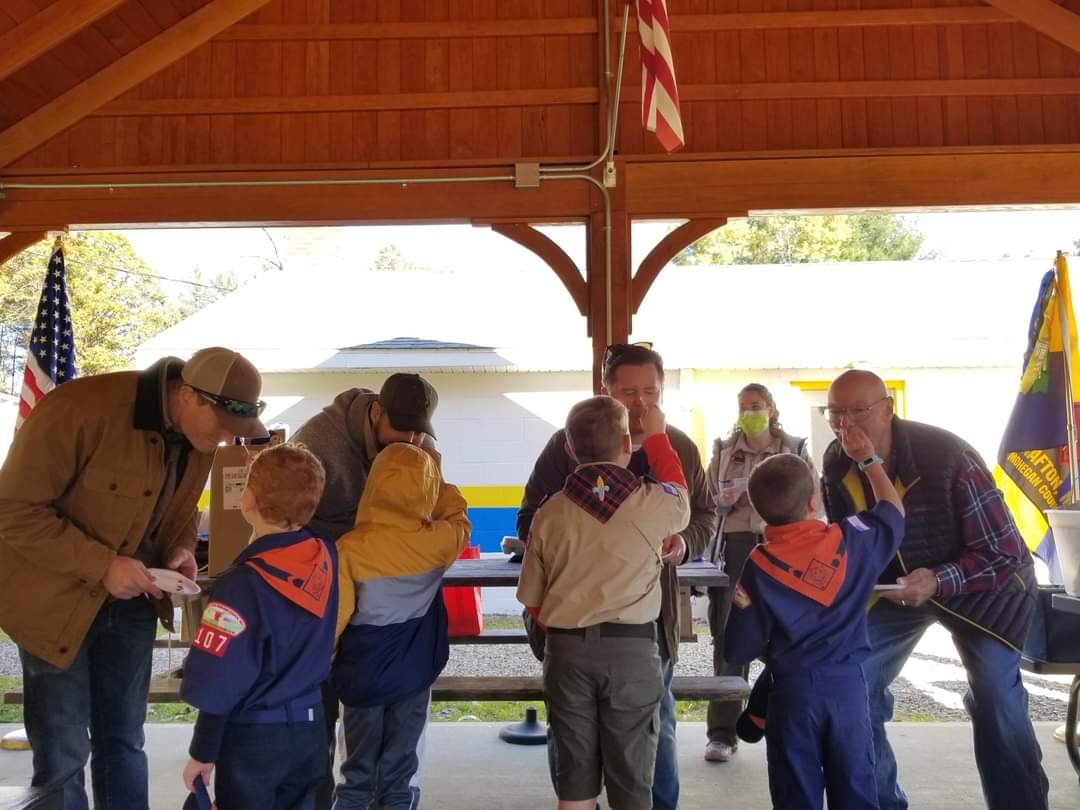 Pack 107 held its November Pack meeting at the Grafton Lions Club on November 6, 2021. Our Scouts enjoyed a pre-meeting game of Red Light ,Green Light, then the meeting was opened with the Flag Ceremony lead by our AOL and Bear Dens. At this Pack Meeting, we welcomed a new Lion Scout, Ian G., and held a Bobcat Ceremony for 4 Scouts who achieved their Bobcat rank. Congratulations to Jacob H., Andrew N., Ian M. and Ellis M. Hiking awards were handed out, and the top 3 popcorn sellers were announced. Congratulations to Matthew L., Jazzy B., and Ollie N.. So far, our Cubmaster, Ms. Tabitha has 7 pies ready for her!!
