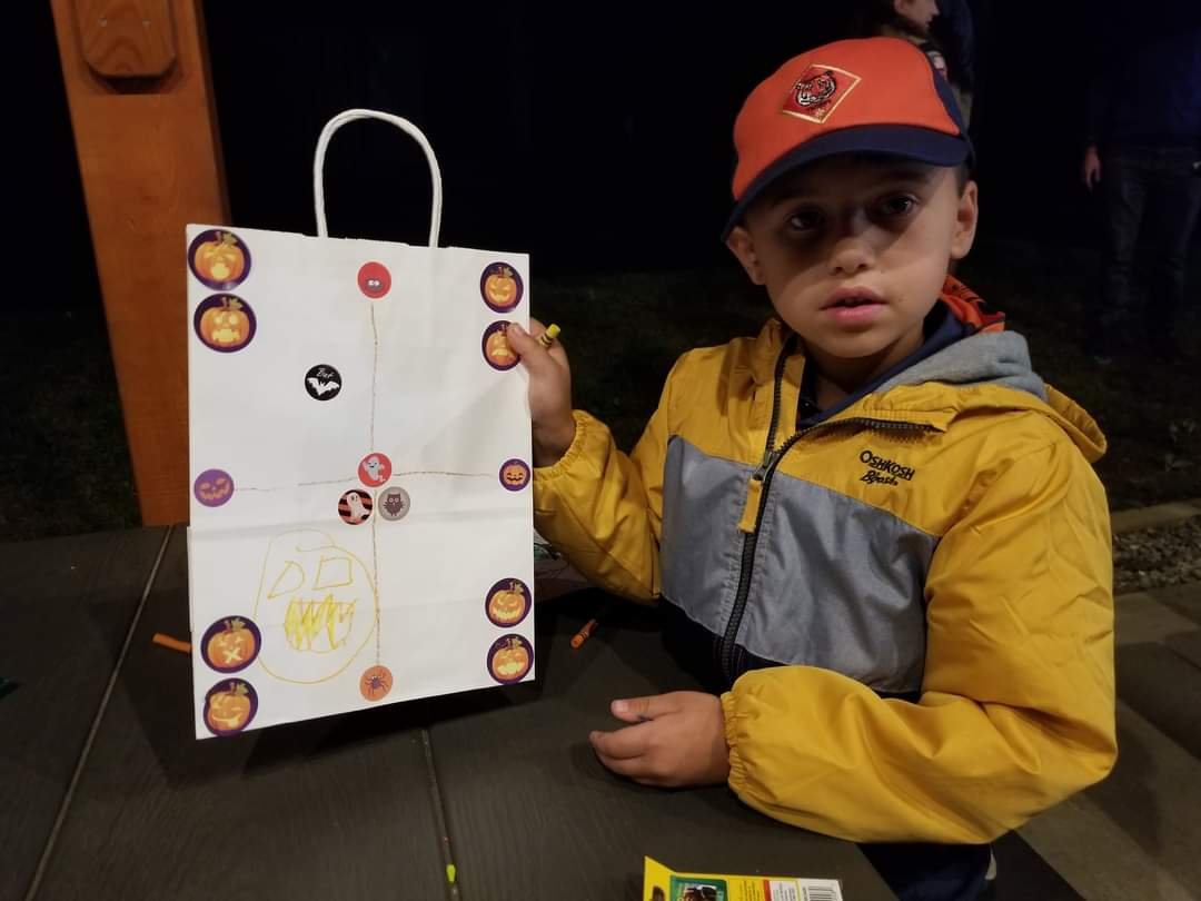 At the October Pack meeting on October 1, 2021, all the Cub Scouts and their families enjoyed designing paper airplanes, and launching them into hula-hoop landing targets. The Cub Scouts also decorated Halloween Trick-Or-Treat bags that they can use for the Scouts Spookerie event at Treasure Valley Scout Reservation (TVSR), the weekend before Halloween.