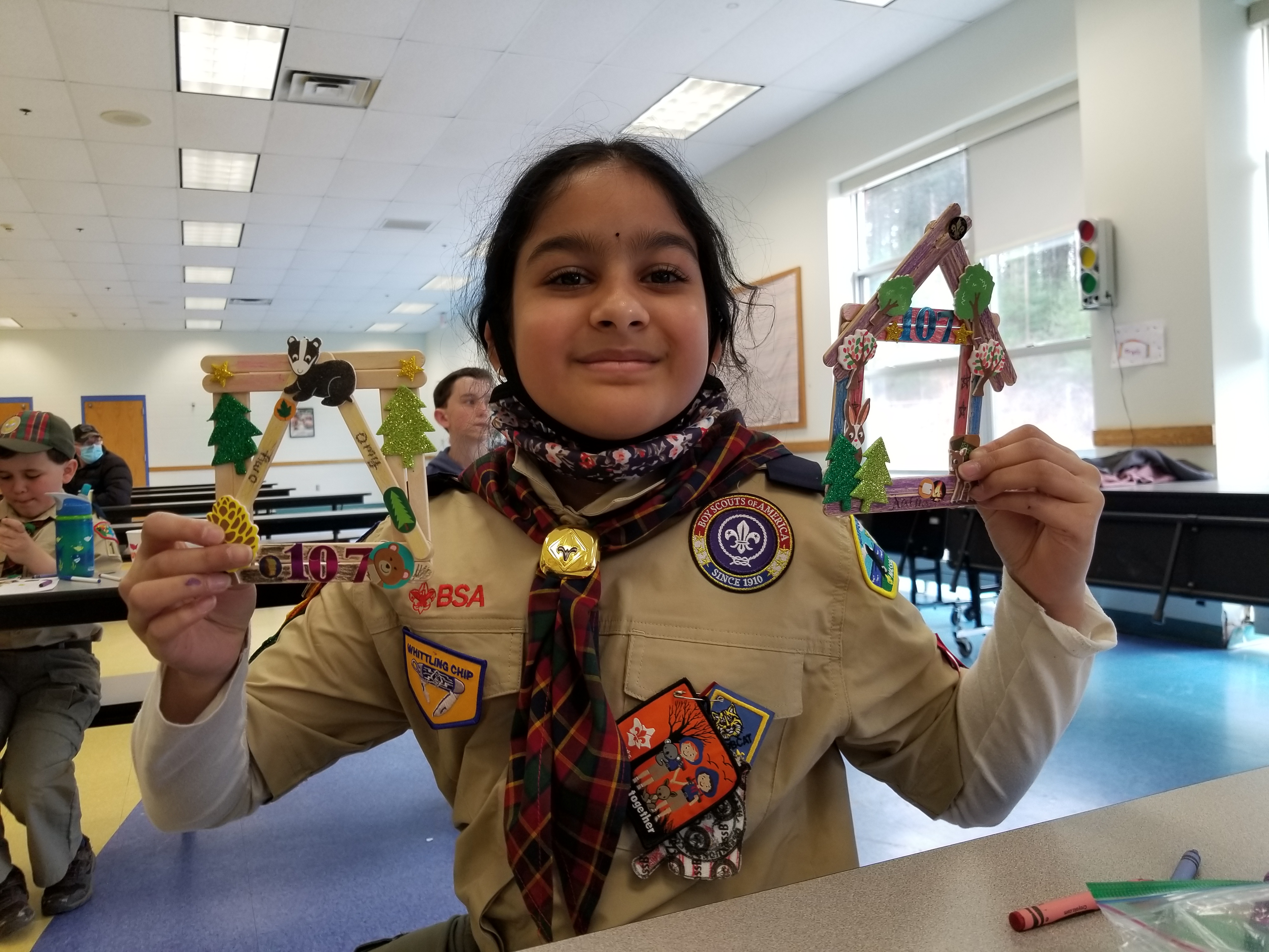 Following the Arrow of Light Award ceremony, there was time for a Pack craft, designed by our Tiger Assistant Den Leader, Mrs. Christine Gaspar. Each Scout and guest were invited to design a Scout themed picture picture frame. It was amazing to see the personalities come out in each design!