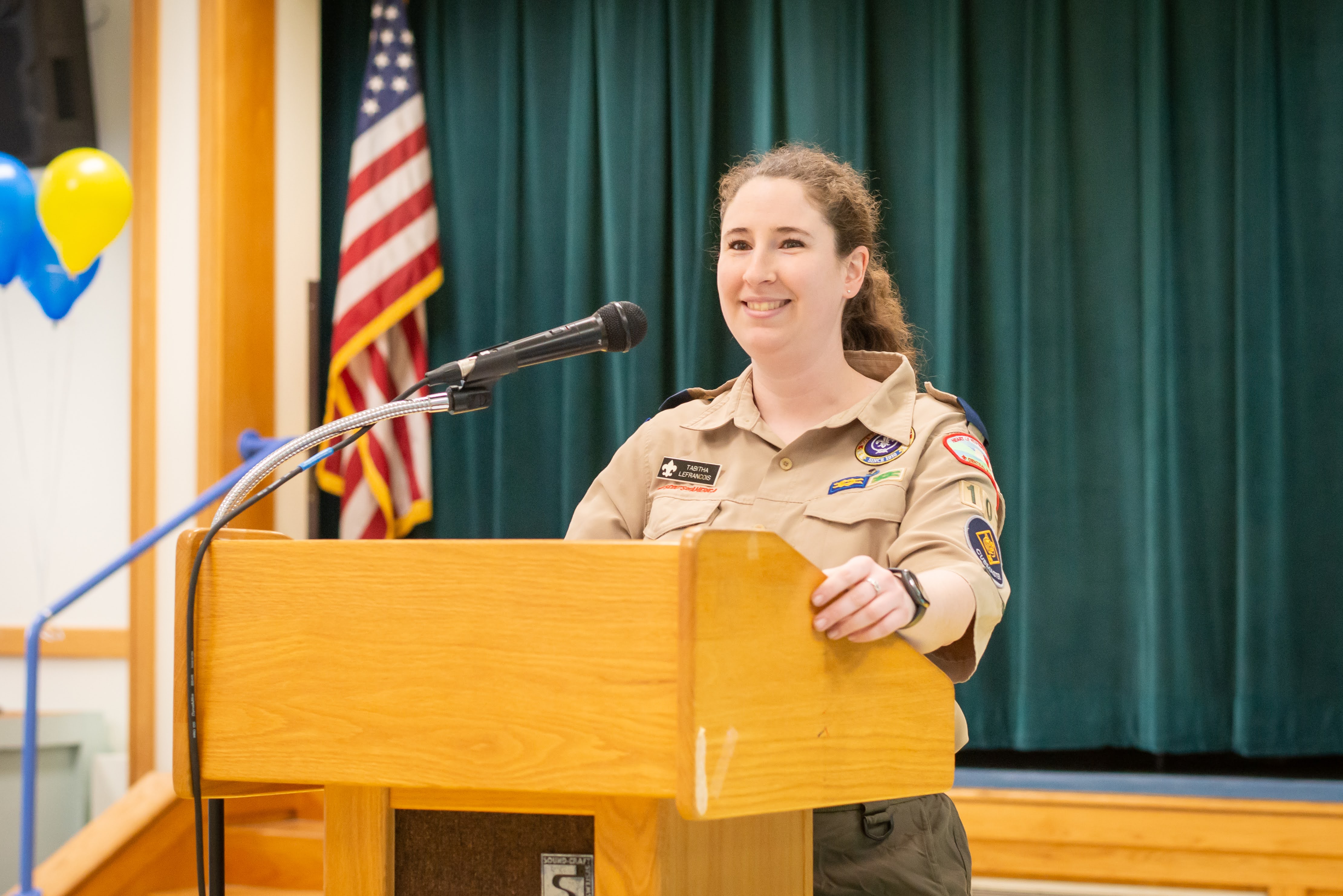 Our Committee Member, Chris Nichols, gave a touching tribute to all that Tabitha has accomplished, and shined a light on all that a Cubmaster does behind the scenes to make our Program run.