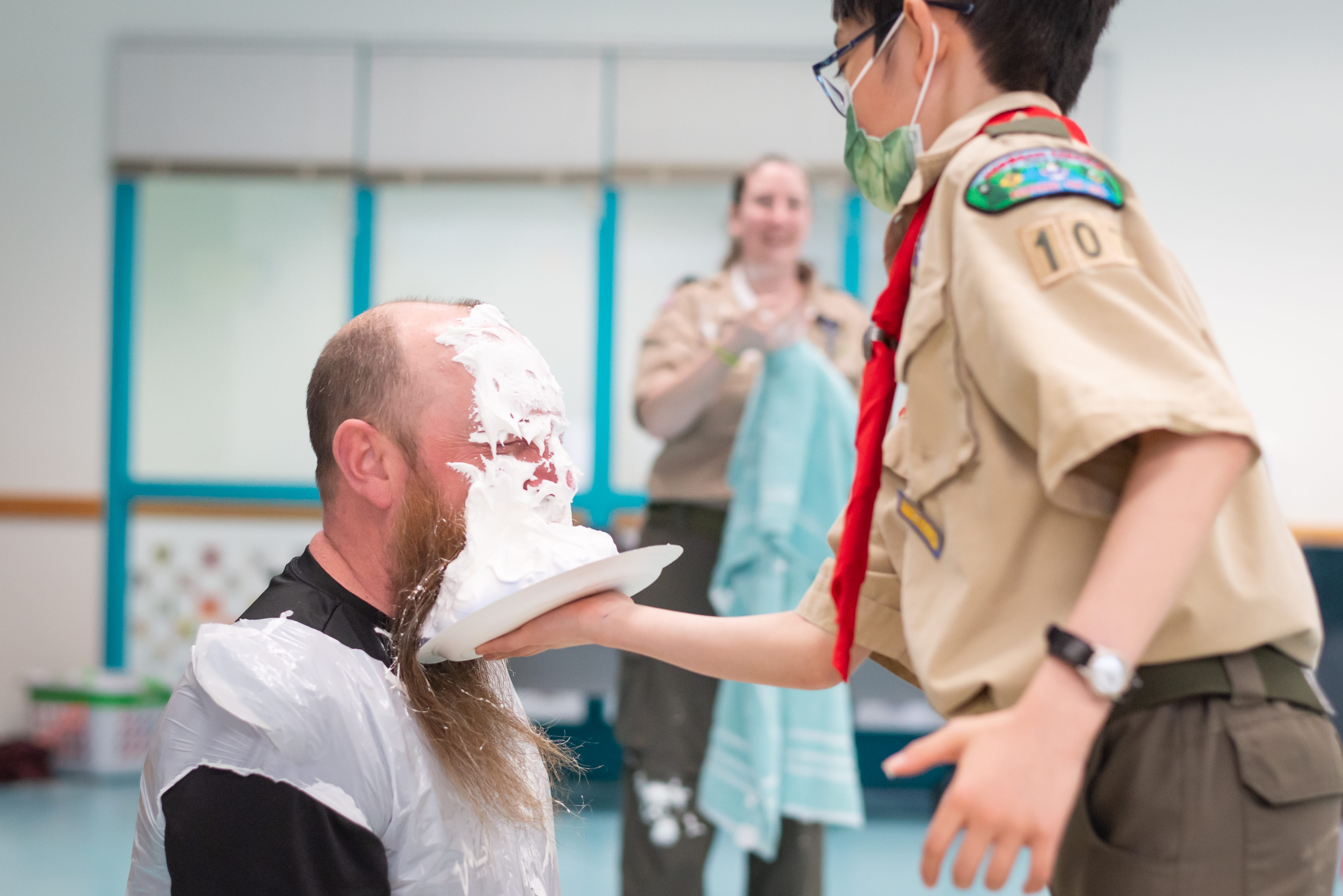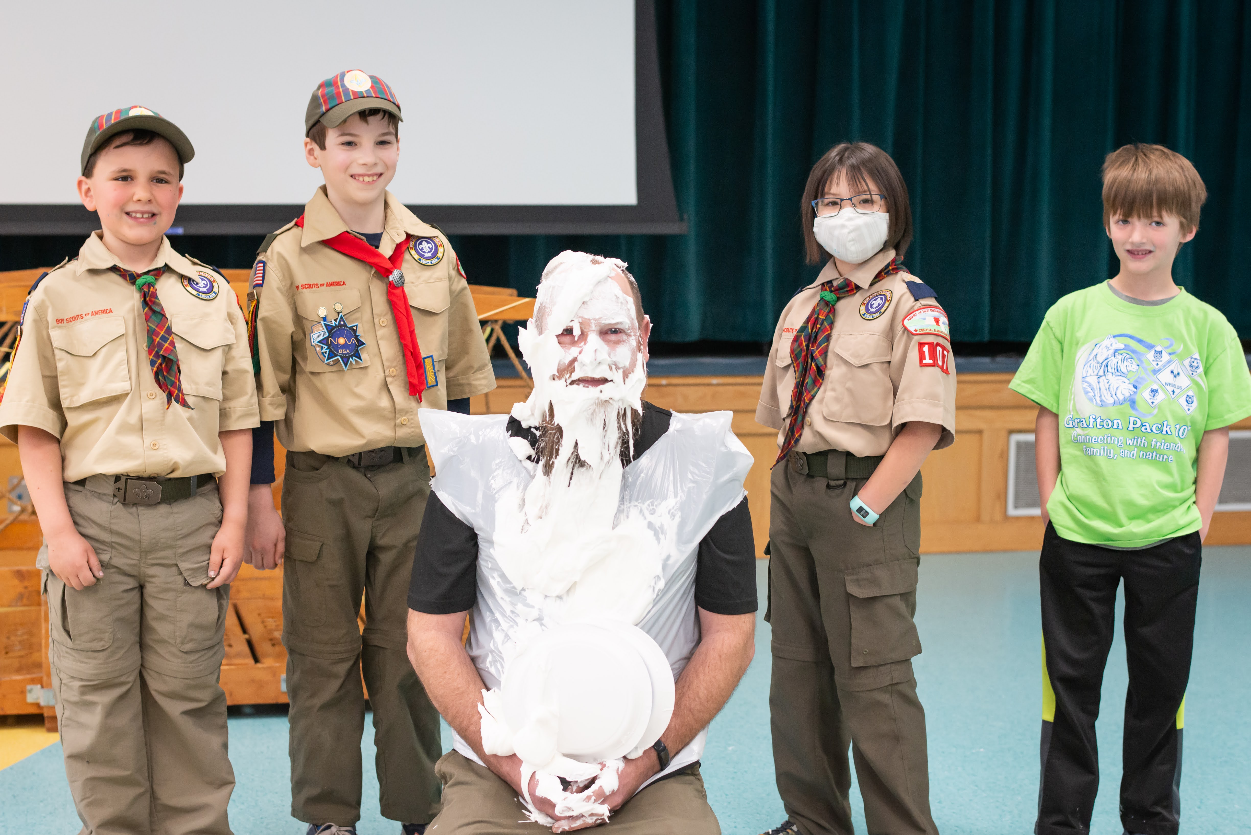 The following Scout who sold/fundraised more than $750 got to put a pie into Mr. King’s face and beard. Congratulations to these 6 Scouts: Jimmy C., Samuel G., Gabriel F., Ollie N., Jasmine B., and Matthew L.